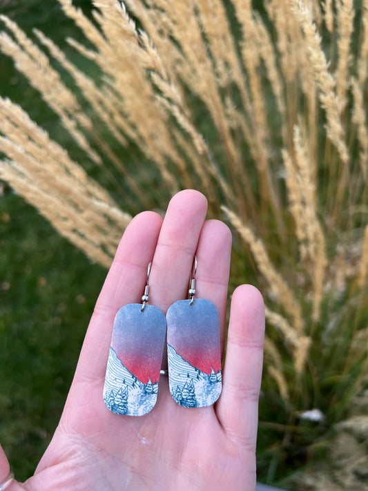 Hand crafted from Earned It Hazy IPA beer cans from Snake River Brewing in Jackson, WY! These capture the essence of alpenglow and winter trees perfectly. Après, anyone??
