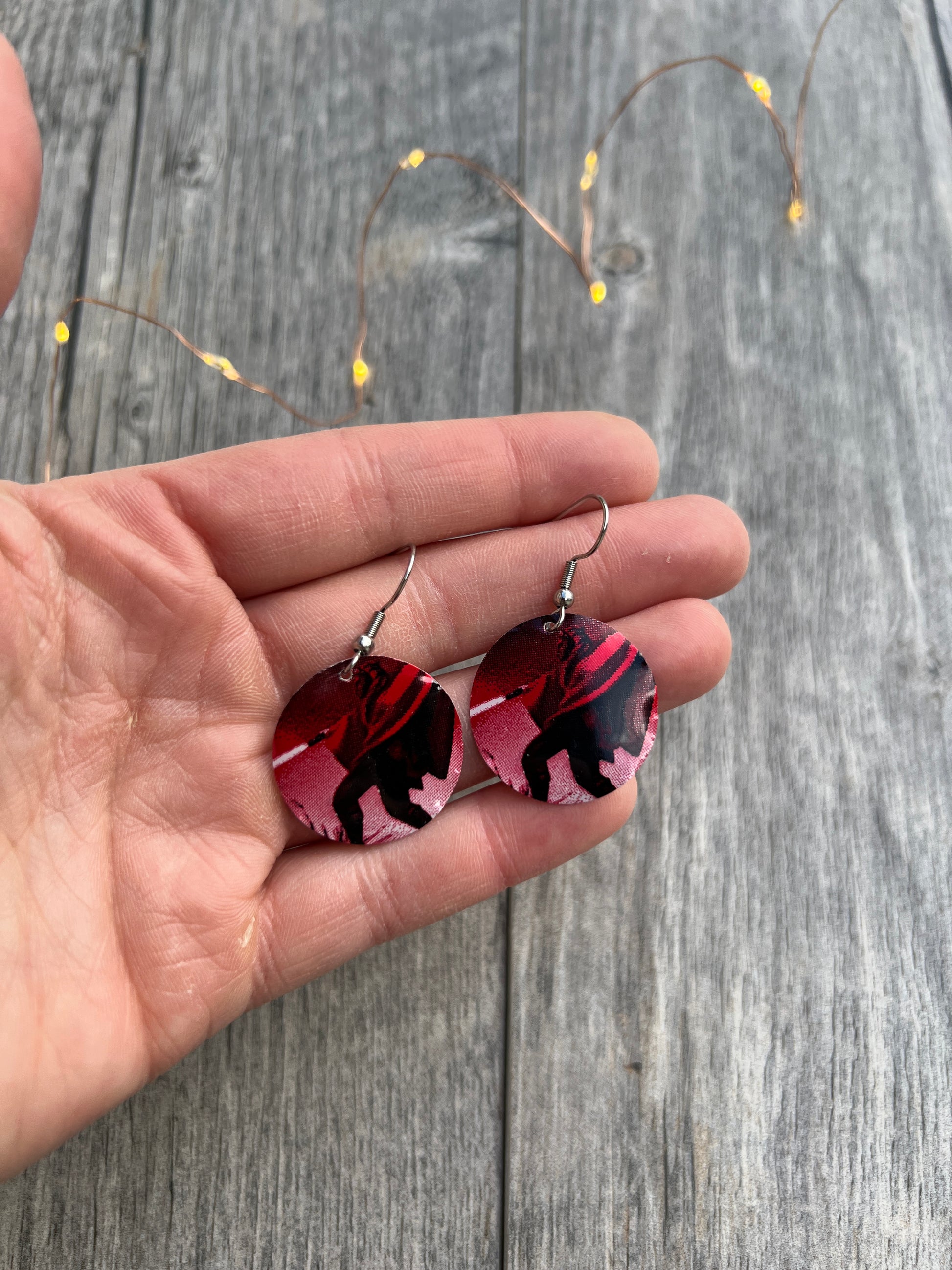 1" tall earrings handmade from beer cans with stainless steel hooks. From Coca-Cola!