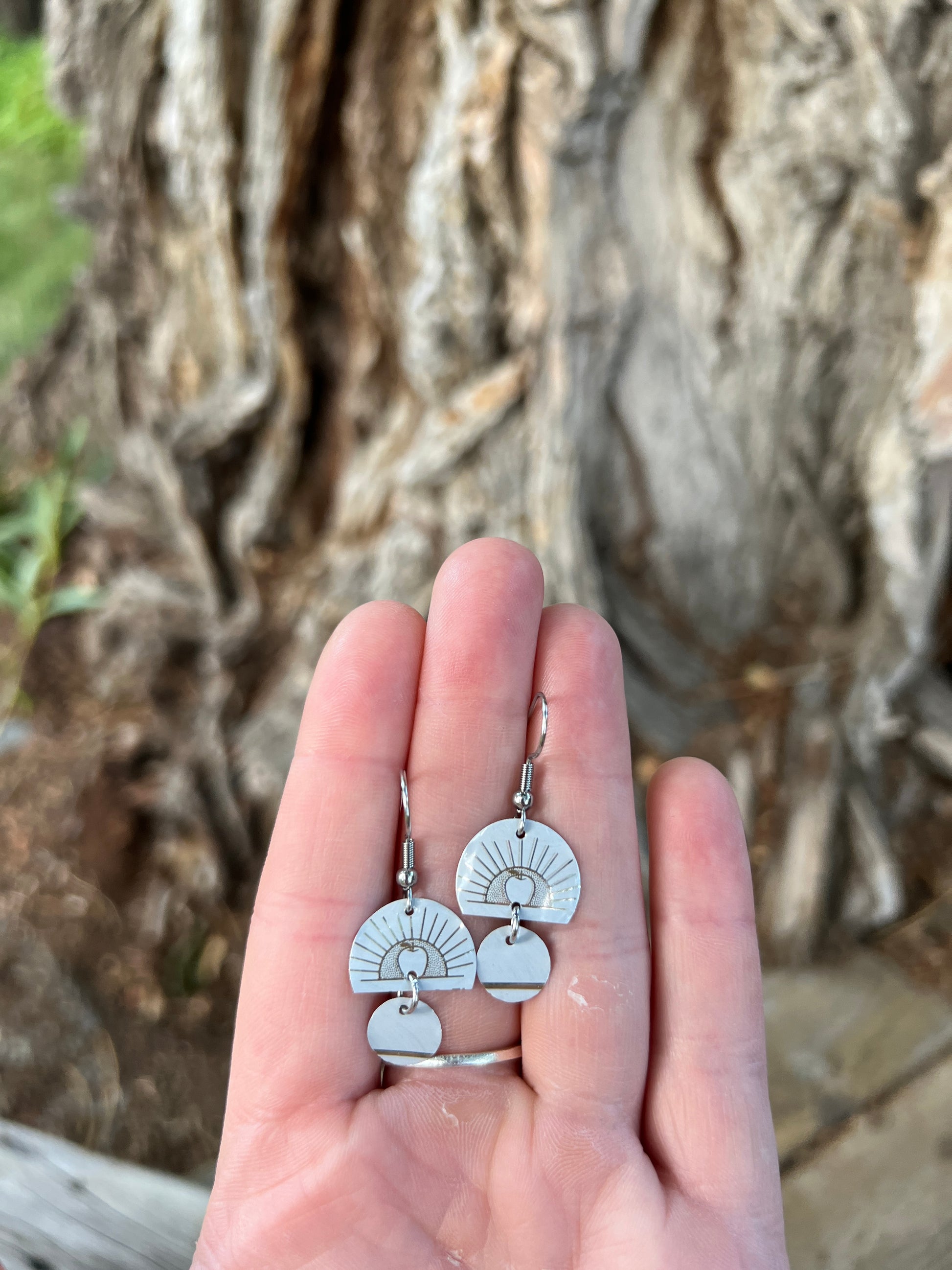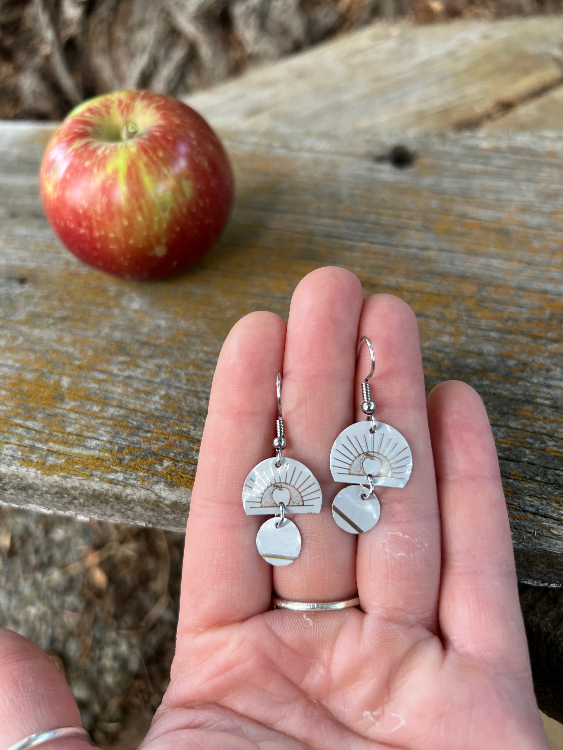 3/4" tall earrings handmade from beer cans with stainless steel hooks. From Western Cider's Poor Farmer!
