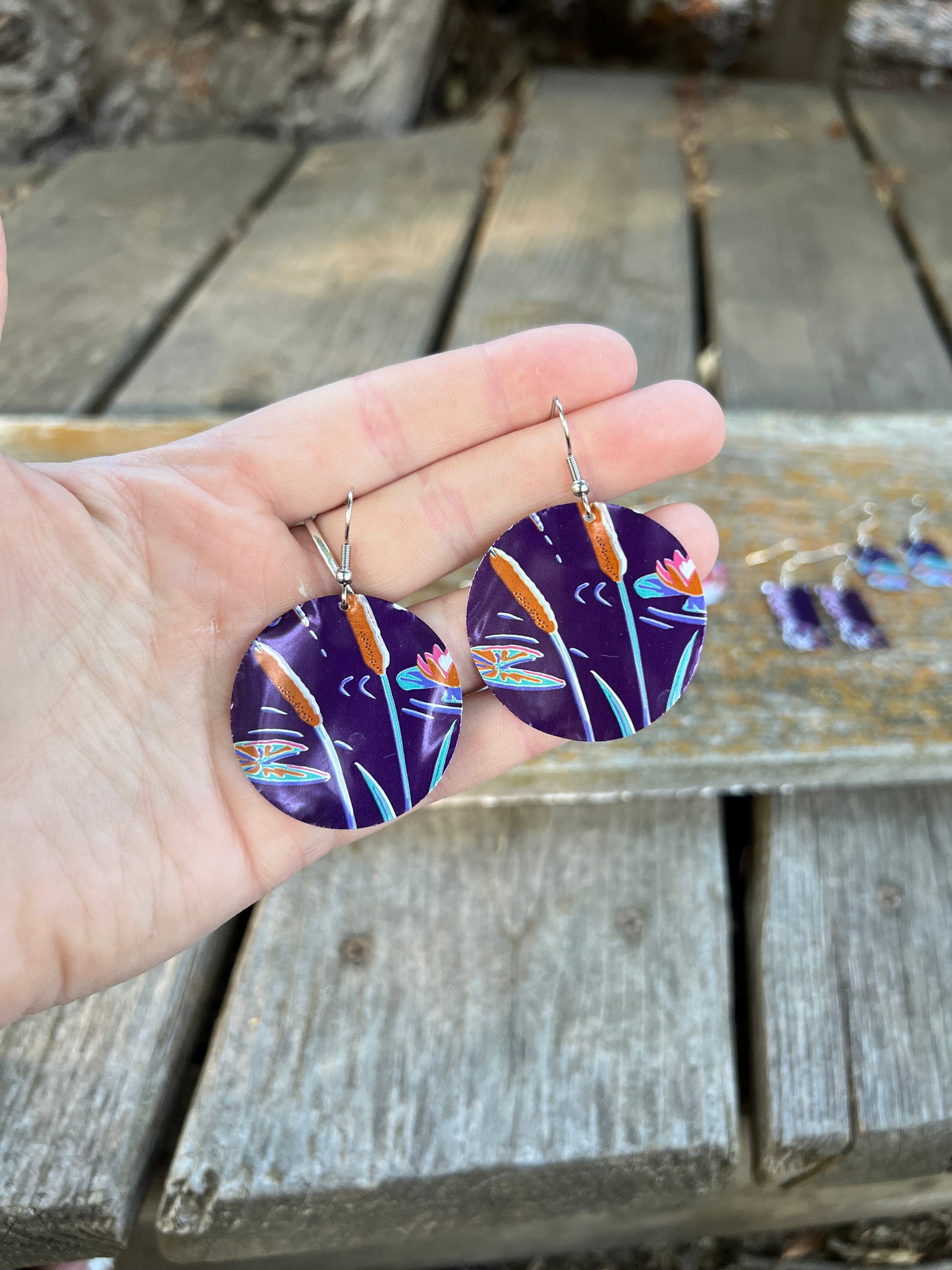 1.5" tall circles handmade from beer cans with stainless steel hooks! From Odell Brewing's Big Sippin'.