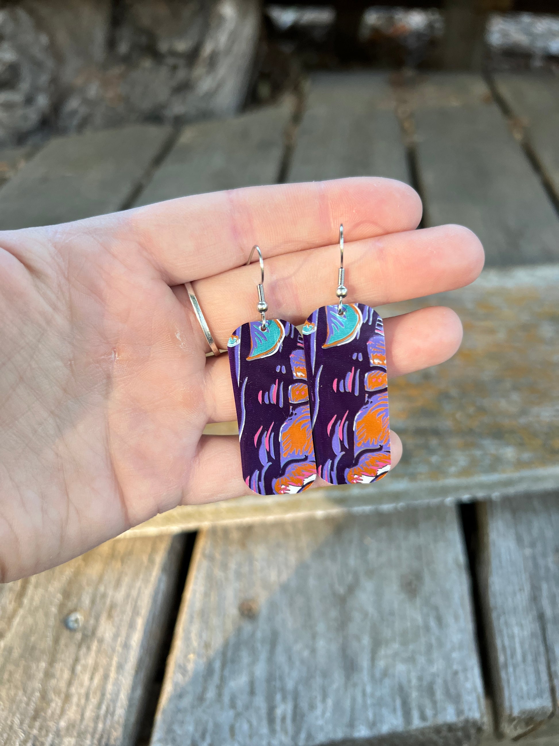 1.5" tall rounded rectangles handmade from beer cans with stainless steel hooks! From Odell Brewing's Big Sippin'.