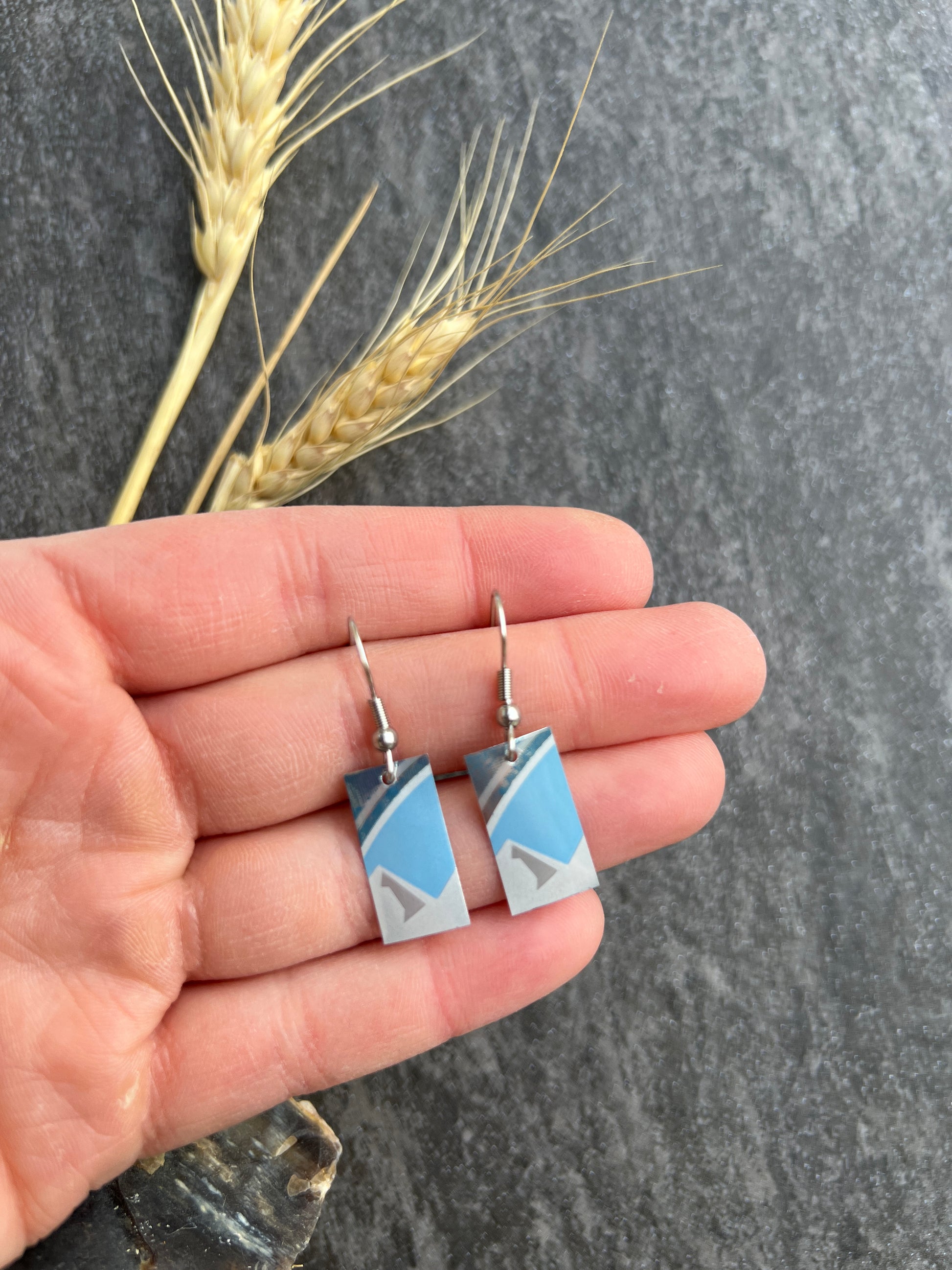 1/2" tall earrings handmade from beer cans with stainless steel hooks. From Busch Light!