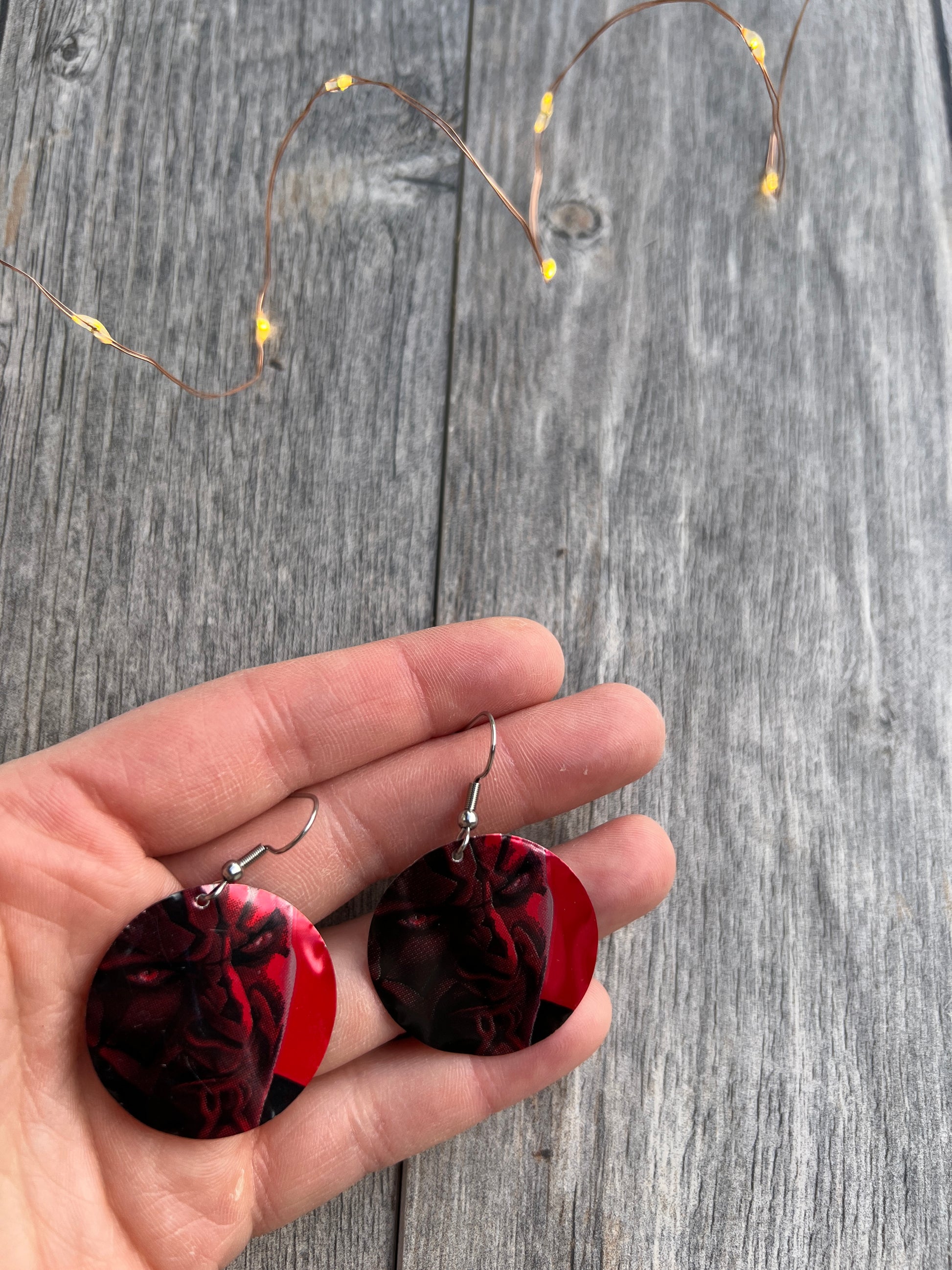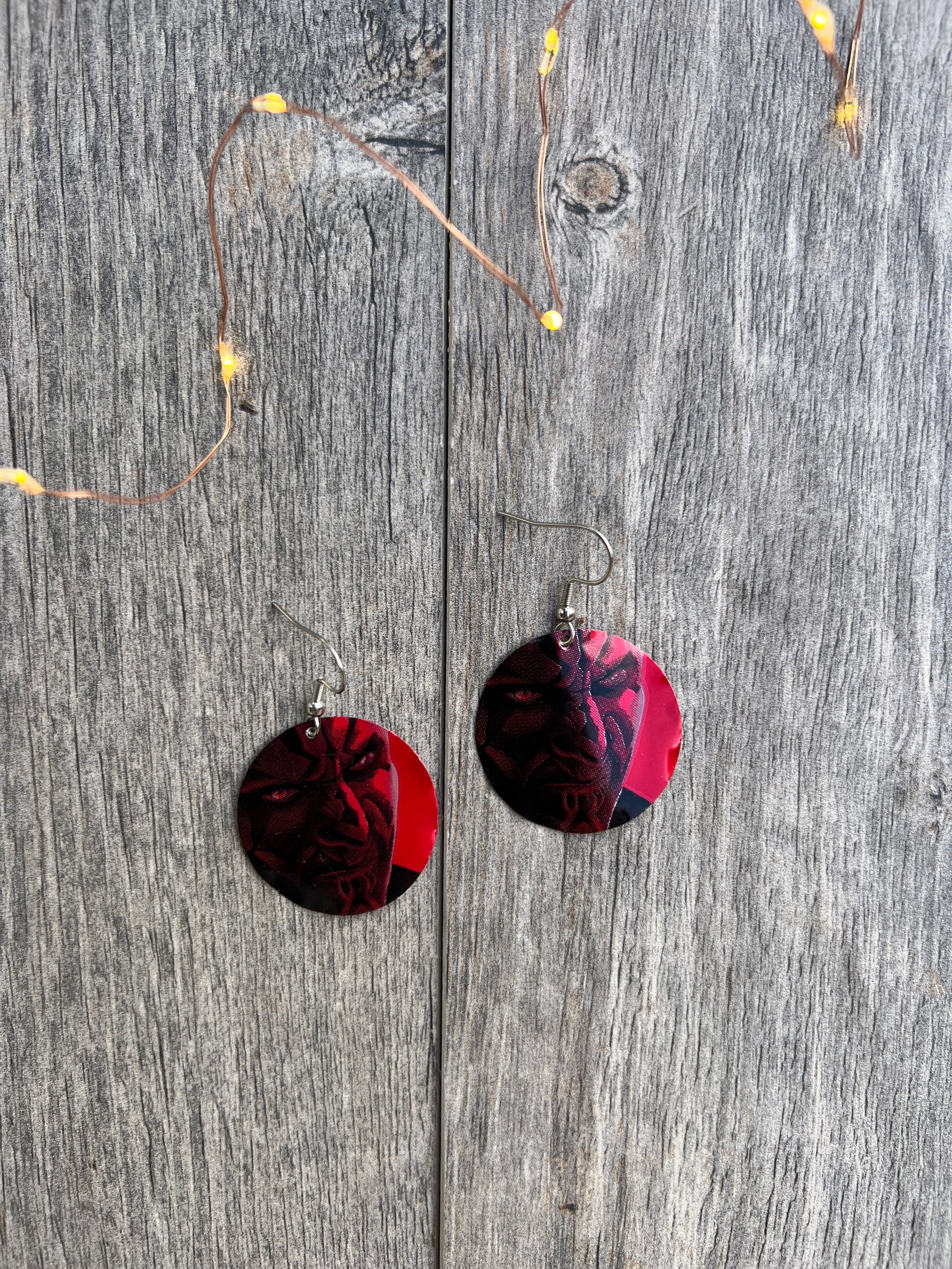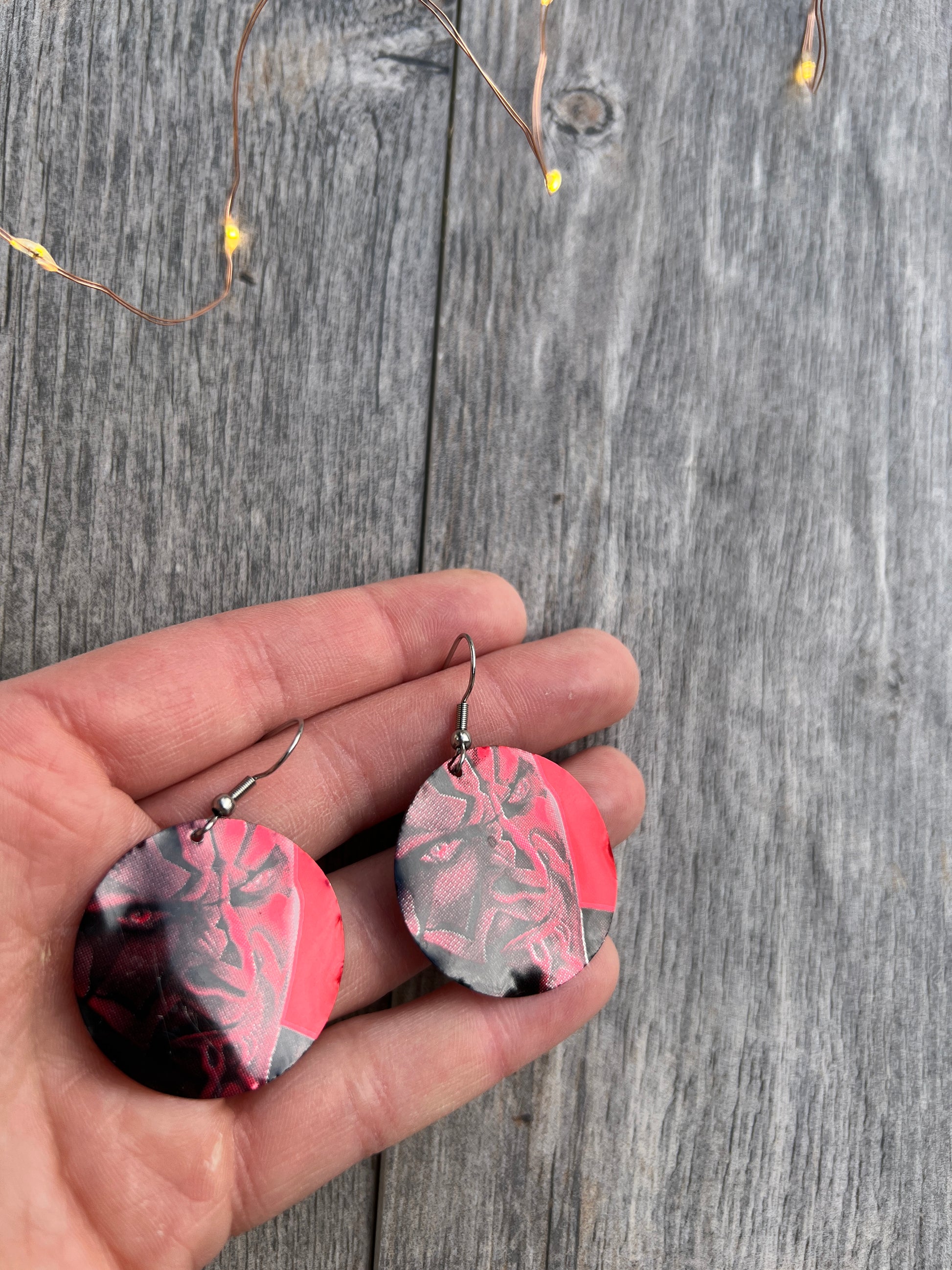 1.25" tall earrings handmade from beer cans with stainless steel hooks. From Coca-Cola!