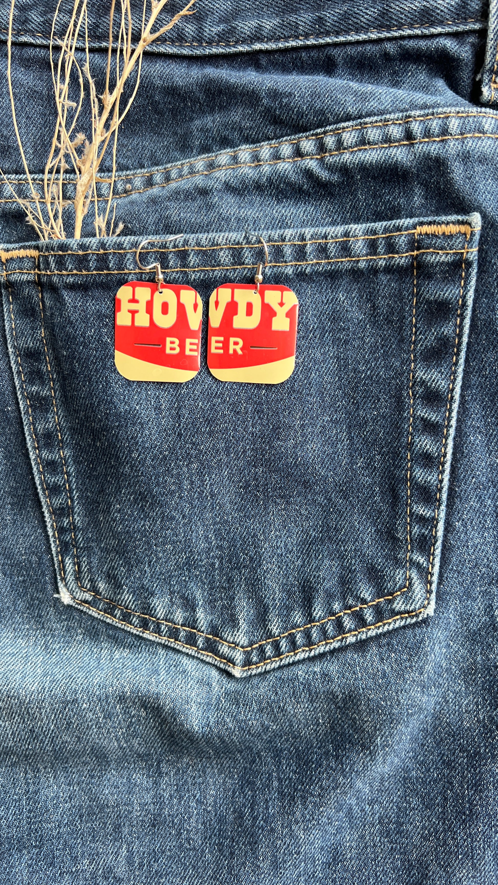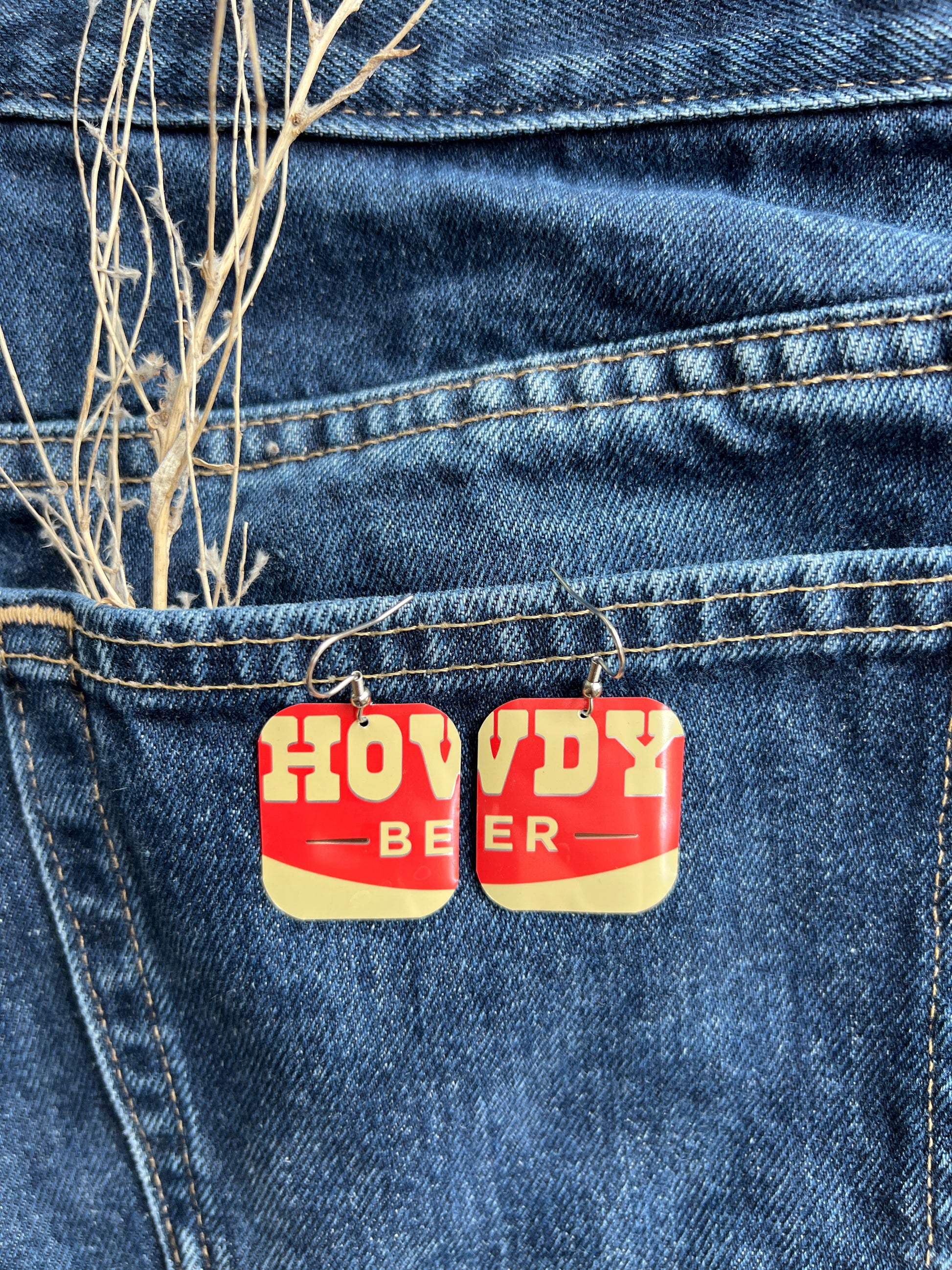 1" tall earrings handmade from beer cans with stainless steel hooks. From Howdy Beer!