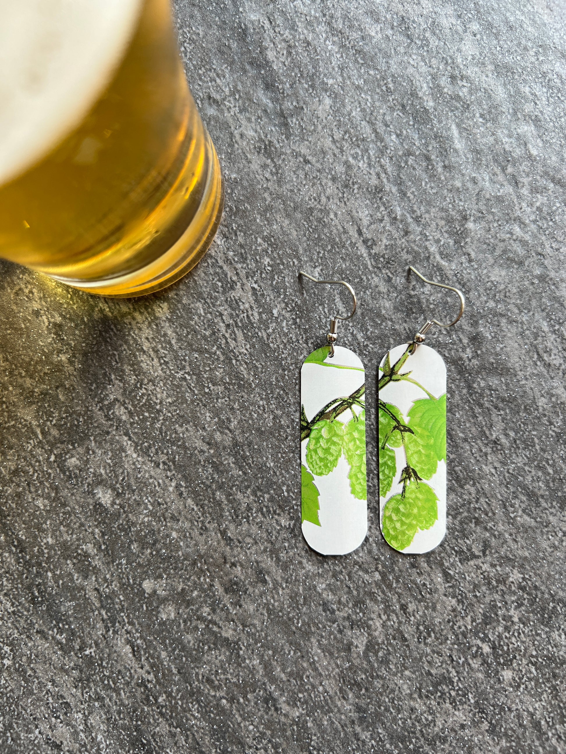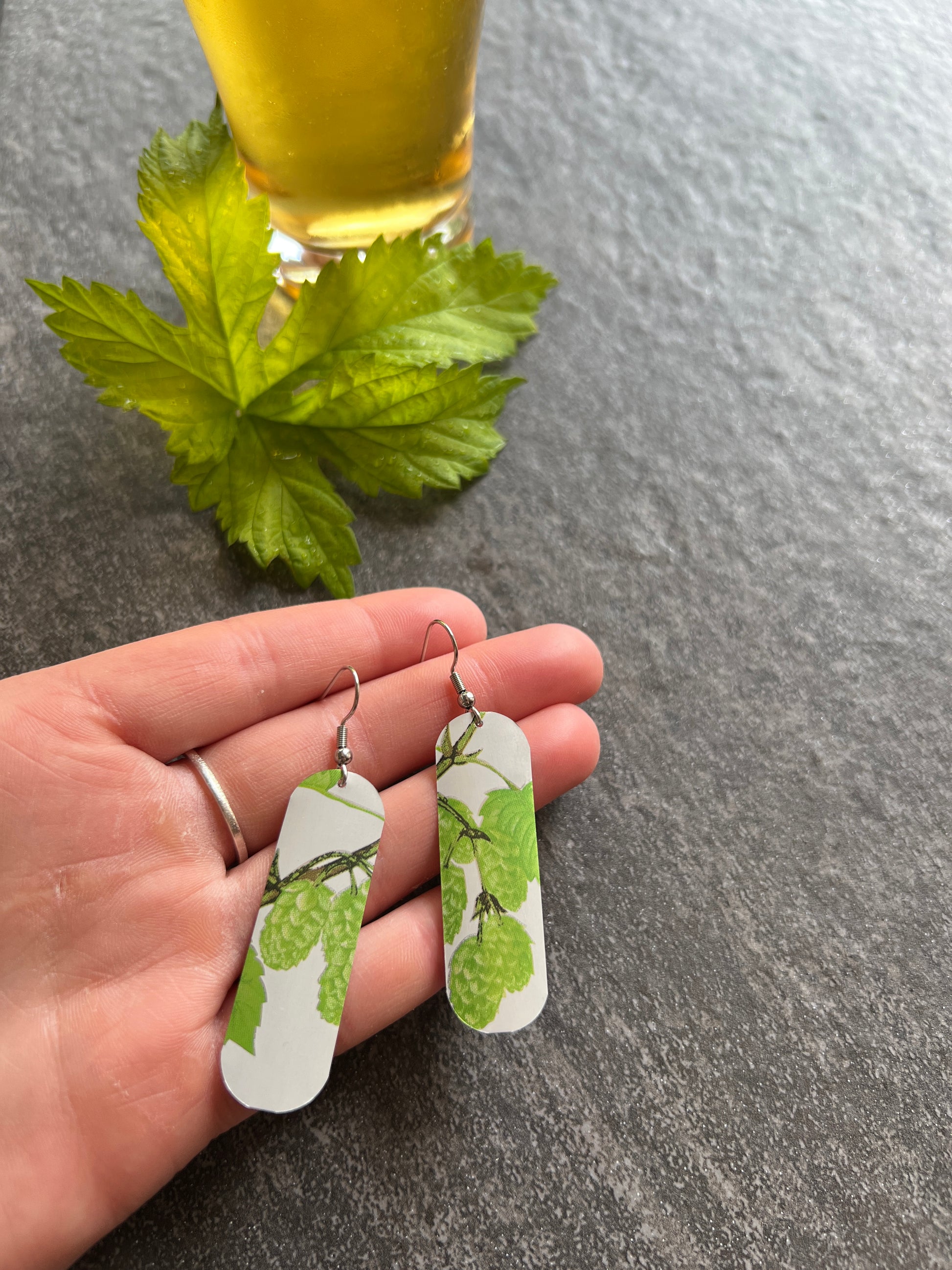 1.5" tall earrings handmade from beer cans with stainless steel hooks. From Freemont Brewing's Lush IPA!