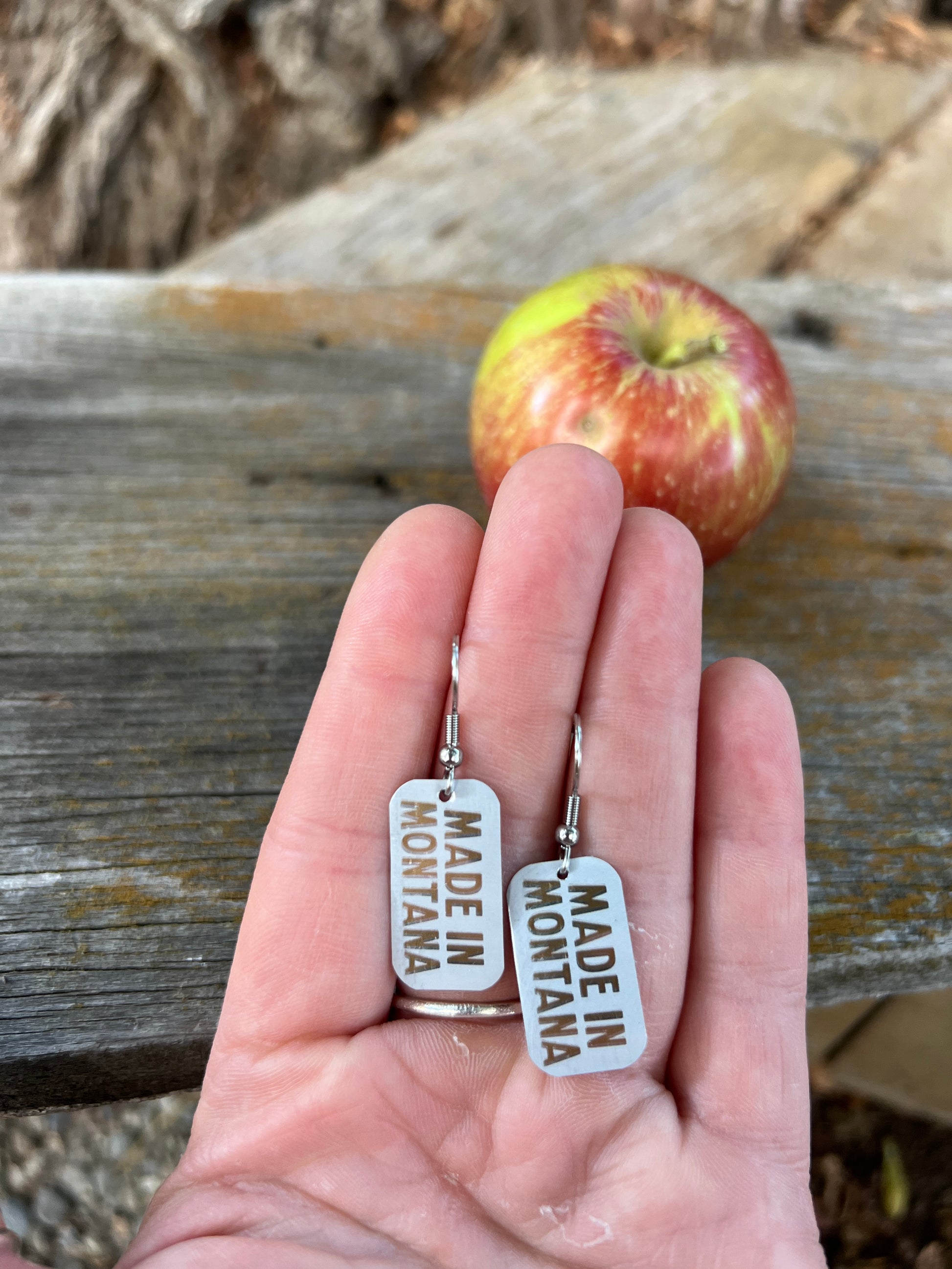 1/2" tall earrings handmade from beer cans with stainless steel hooks. From Western Cider's Poor Farmer!