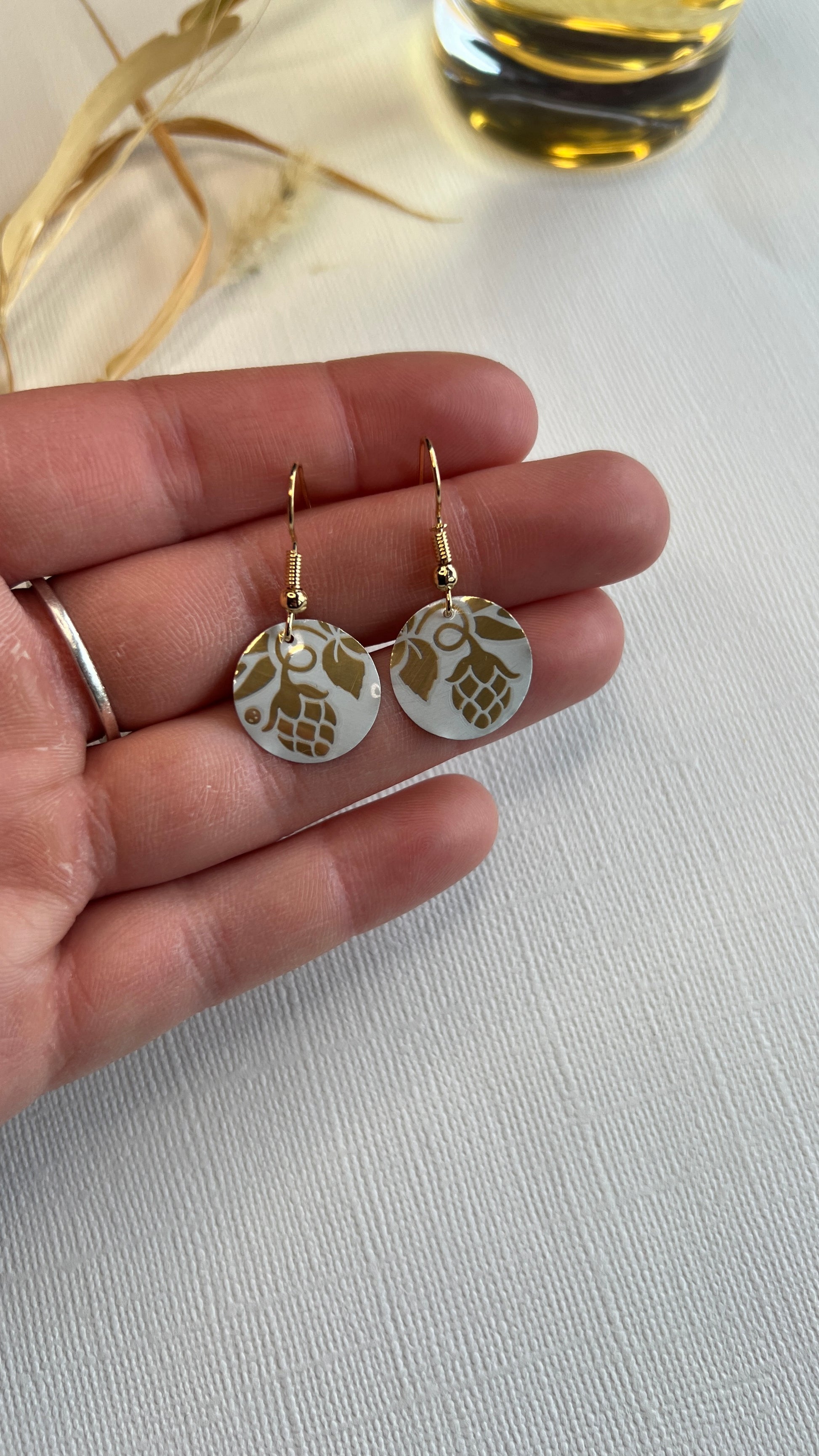 1/2" tall circles handmade from beer cans with stainless steel hooks. From Miller Lite cans!