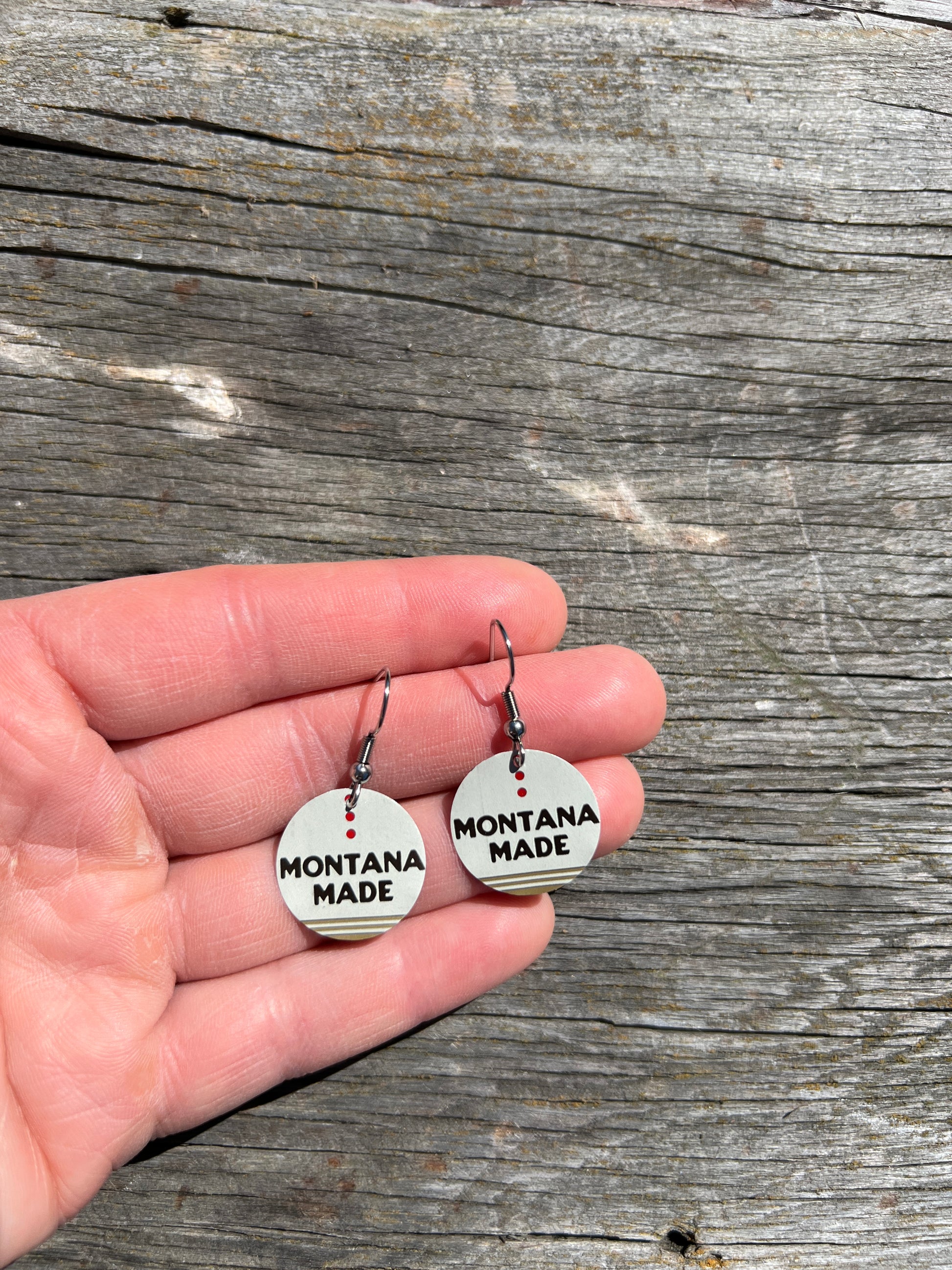 3/4" tall earrings handmade from beer cans with stainless steel hooks. From Bitter Root Brewing's Dirt Church!