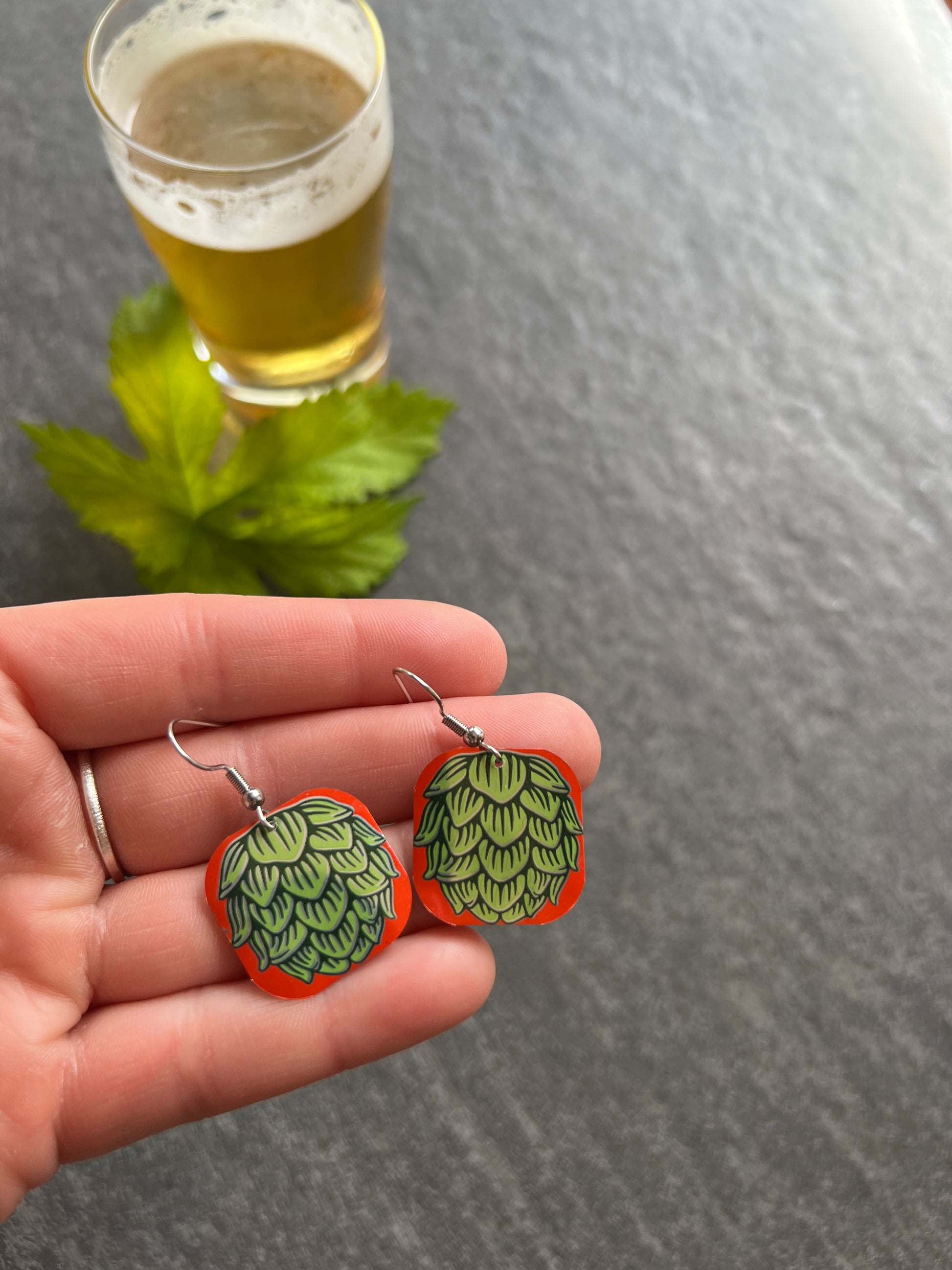 1" tall earrings handmade from beer cans with stainless steel hooks. From Freemont Brewing's Grapefruit IPA!