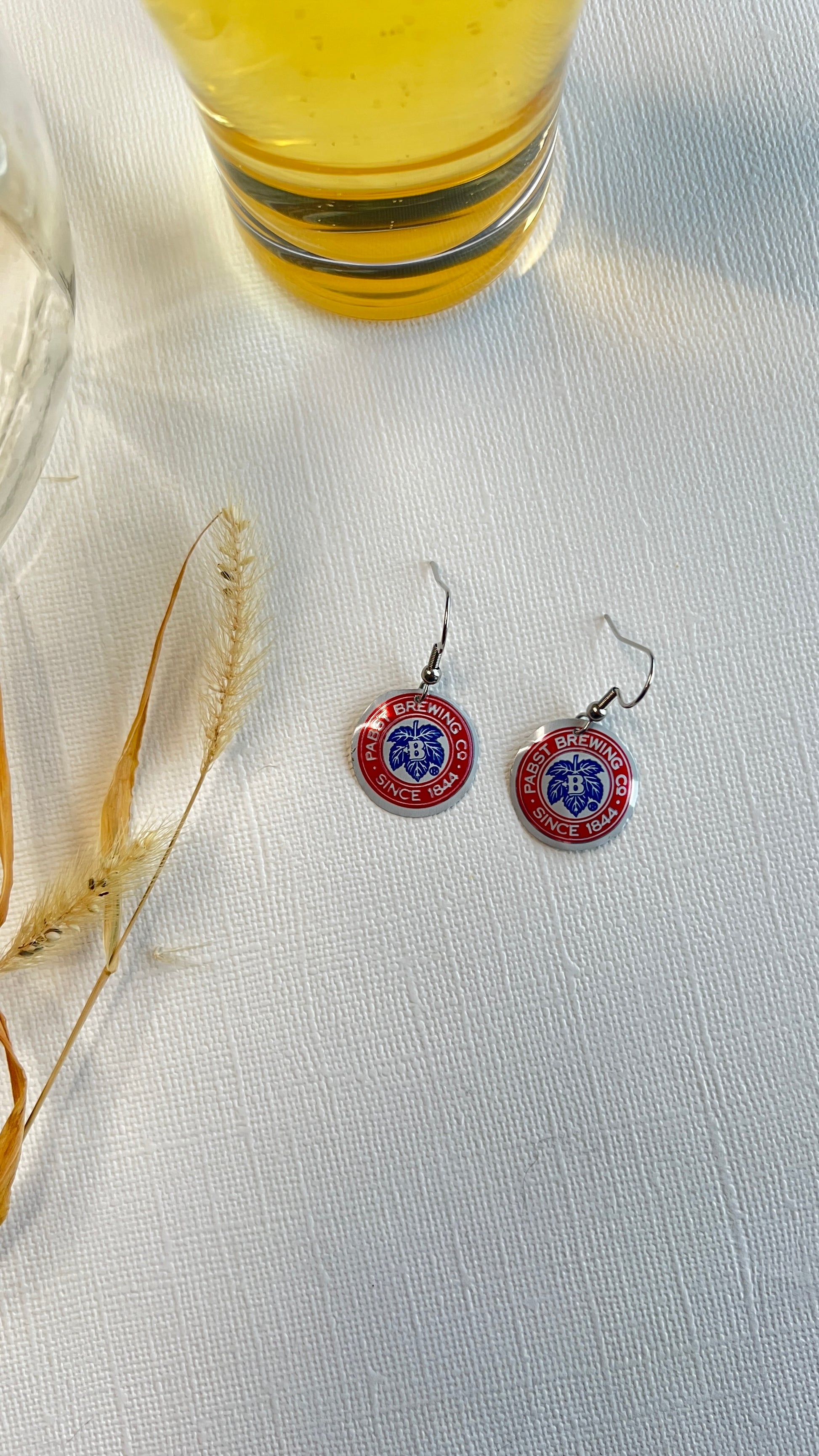 1/2" tall circles handmade from beer cans with stainless steel hooks. From Pabst Blue Ribbon!