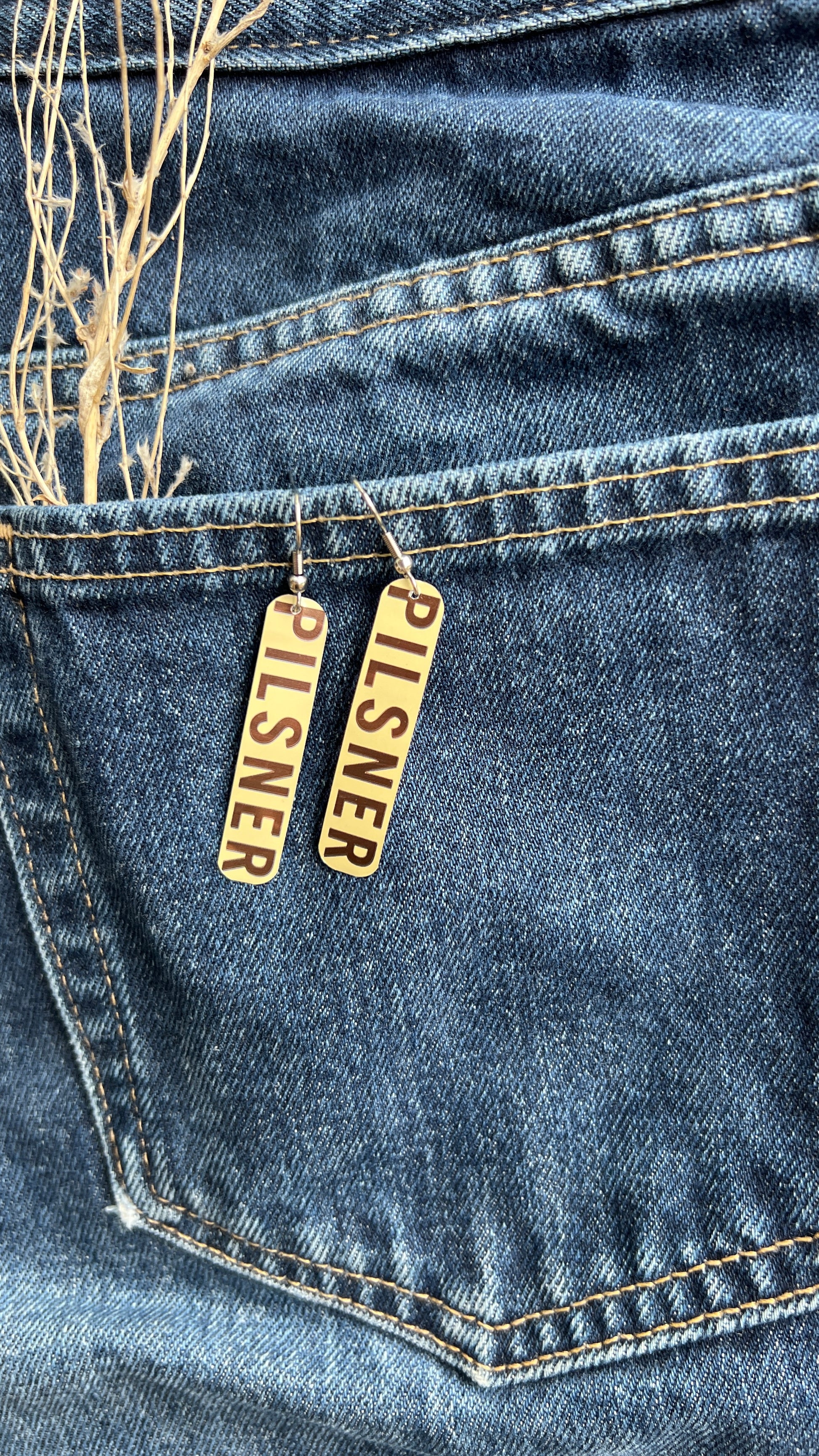 1.5" tall earrings handmade from beer cans with stainless steel hooks. From Howdy Beer!