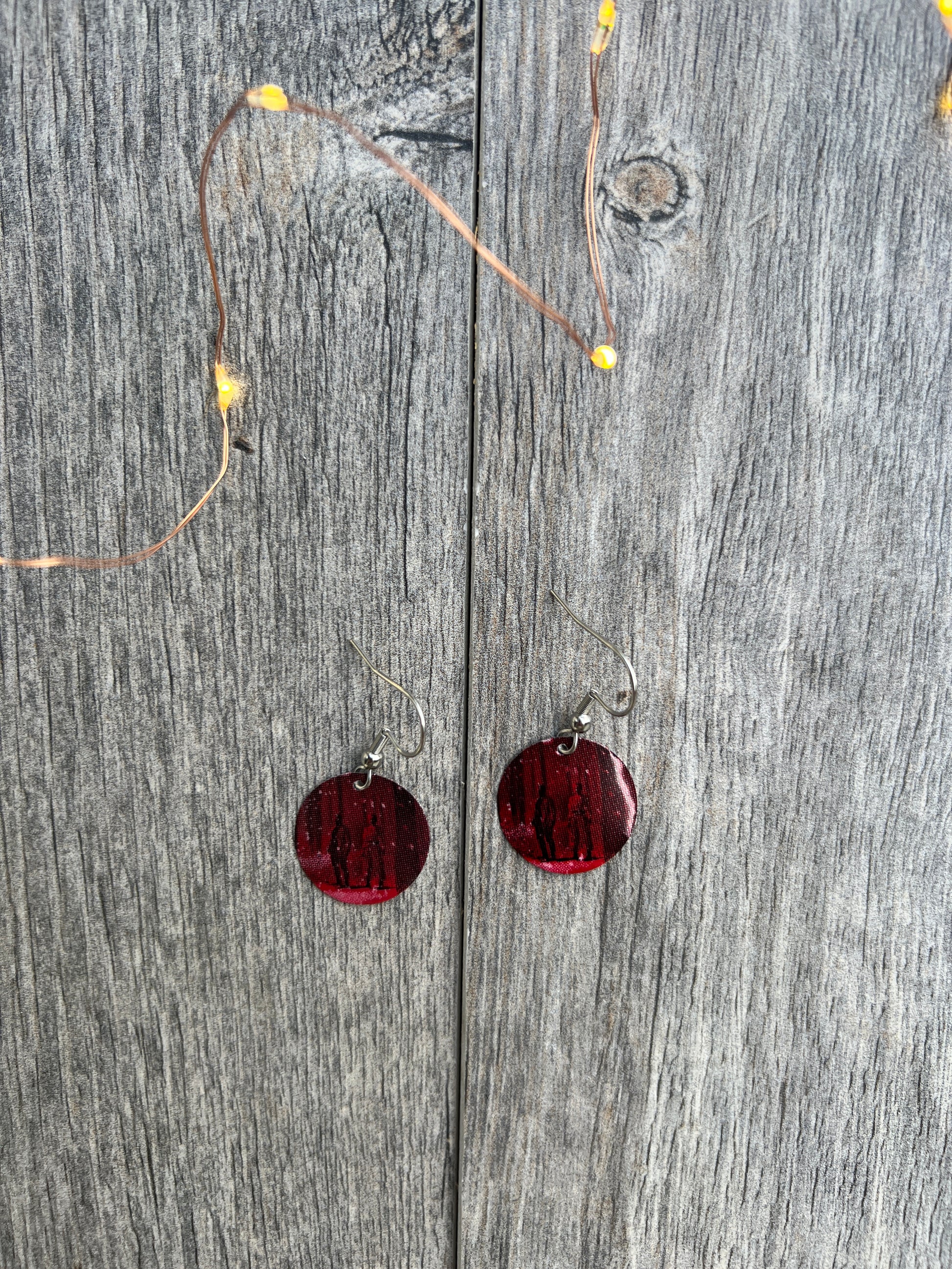 3/4" tall earrings handmade from beer cans with stainless steel hooks. From Coca-Cola!