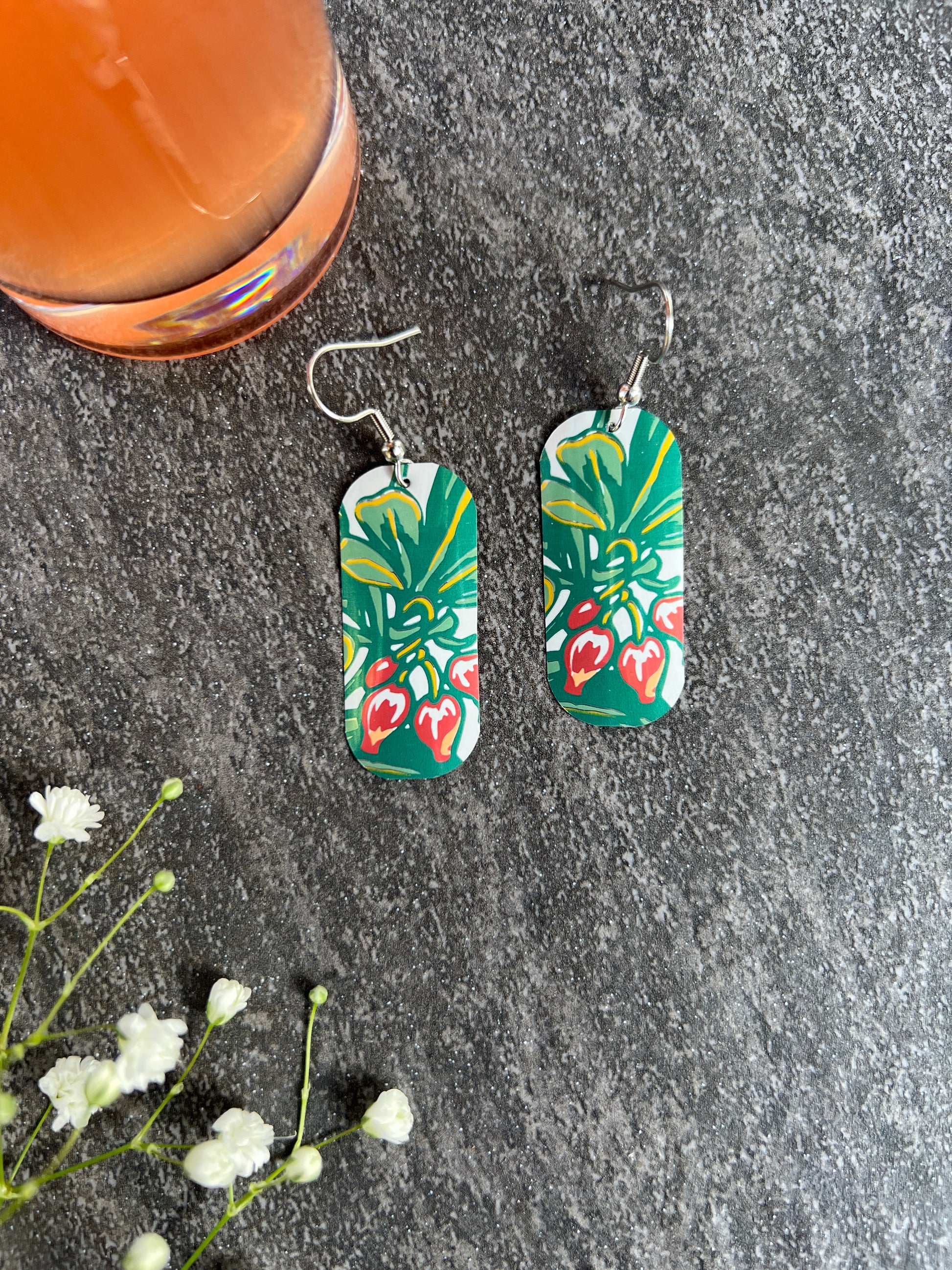 1.25" tall earrings handmade from beer cans with stainless steel hooks. From Sippin Pretty cans out of Odell Brewing!
