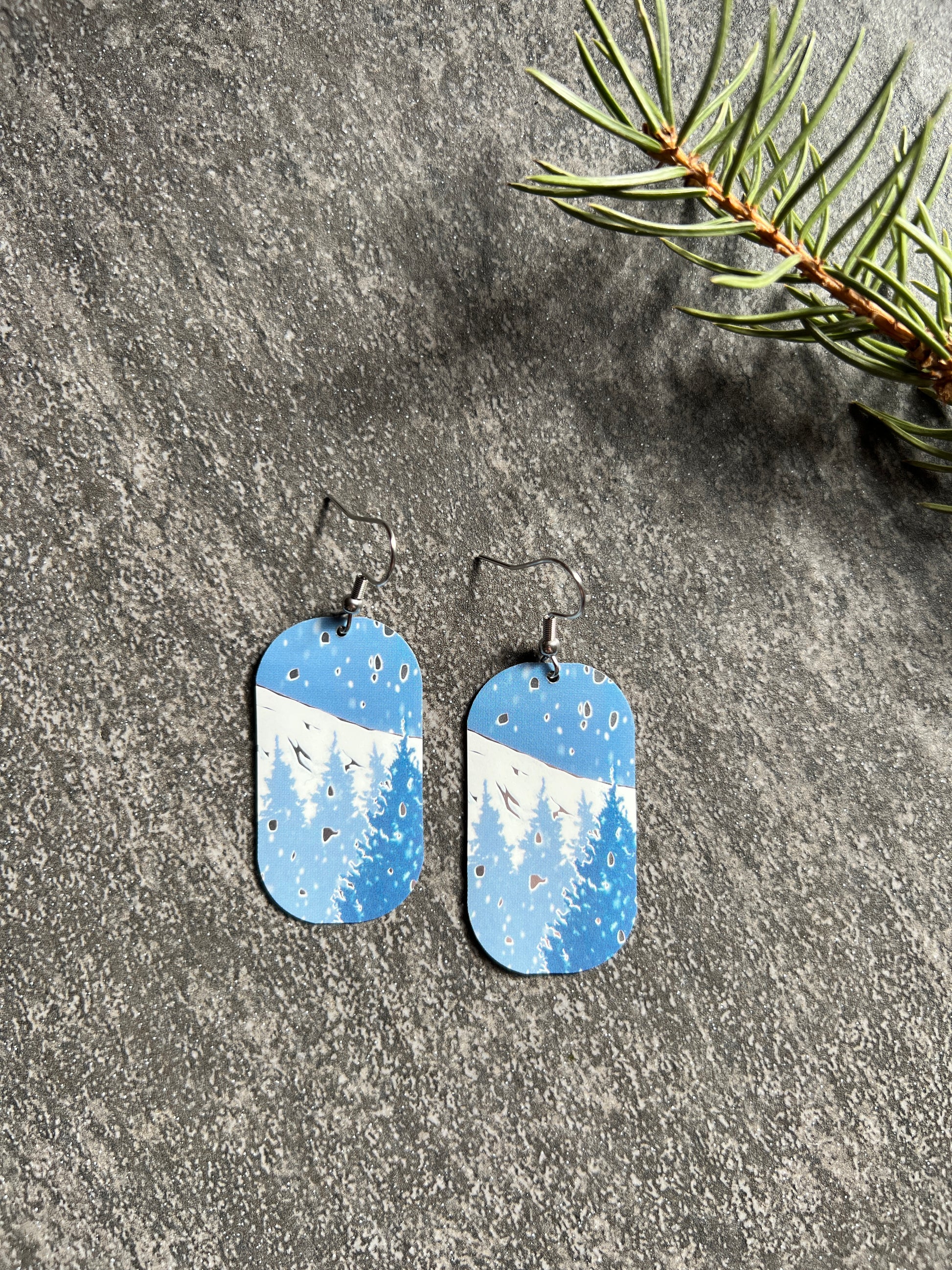 1.5" tall earrings handmade from beer cans with stainless steel hooks. From Everybody's Brewing's Imaginary Friends Winter IPA.