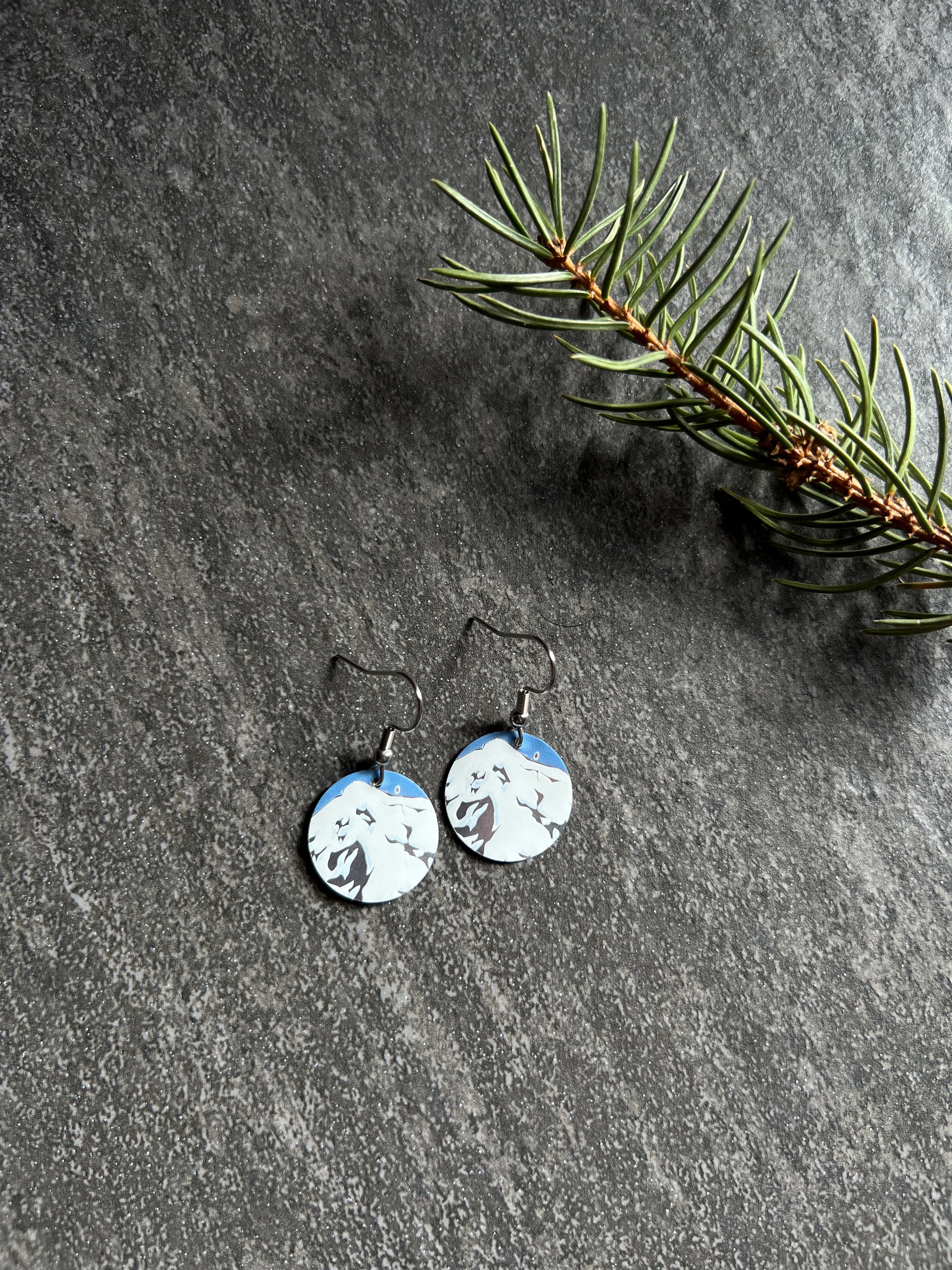 3/4" tall earrings handmade from beer cans with stainless steel hooks. From Everybody's Brewing's Imaginary Friends Winter IPA.