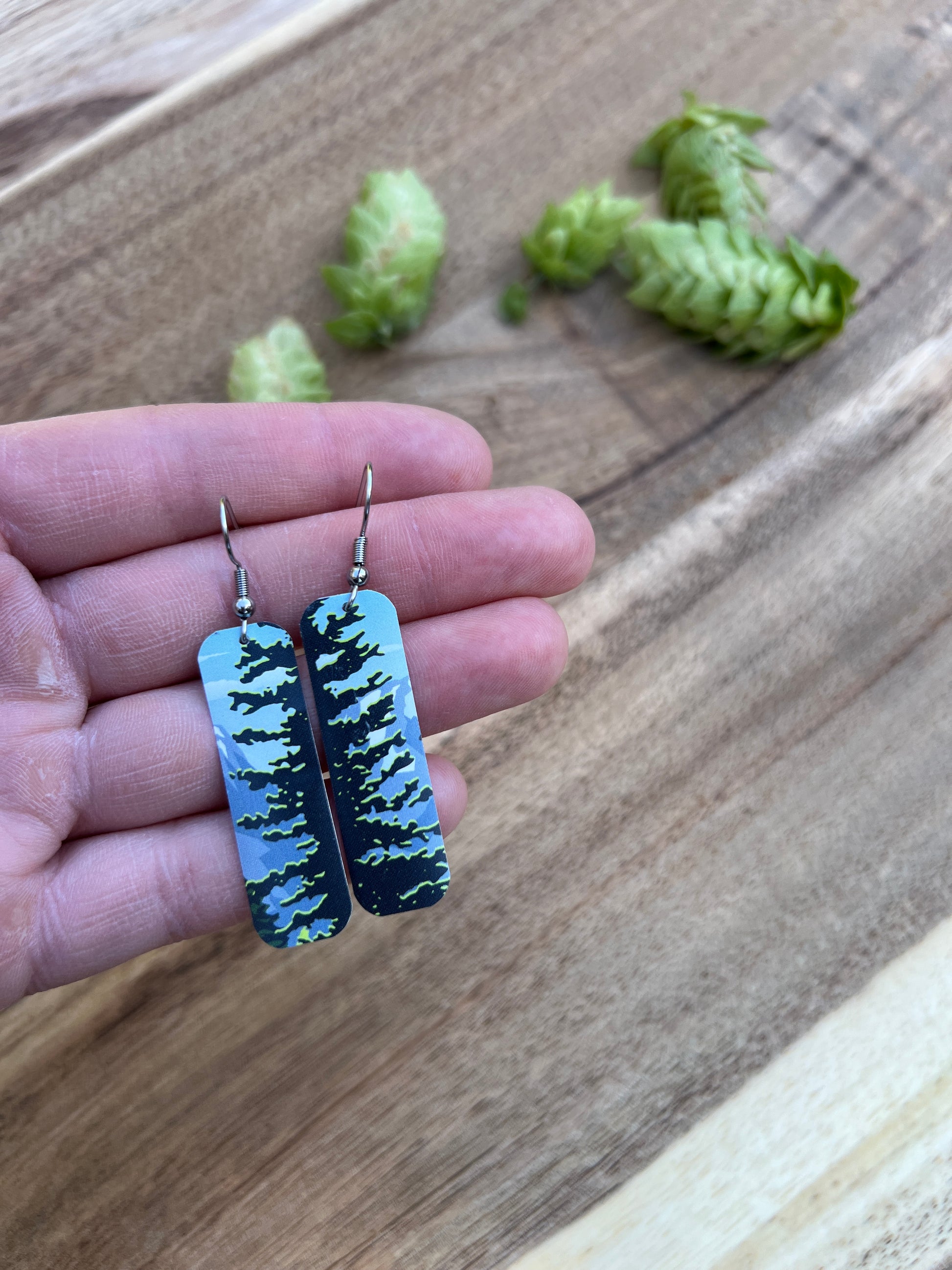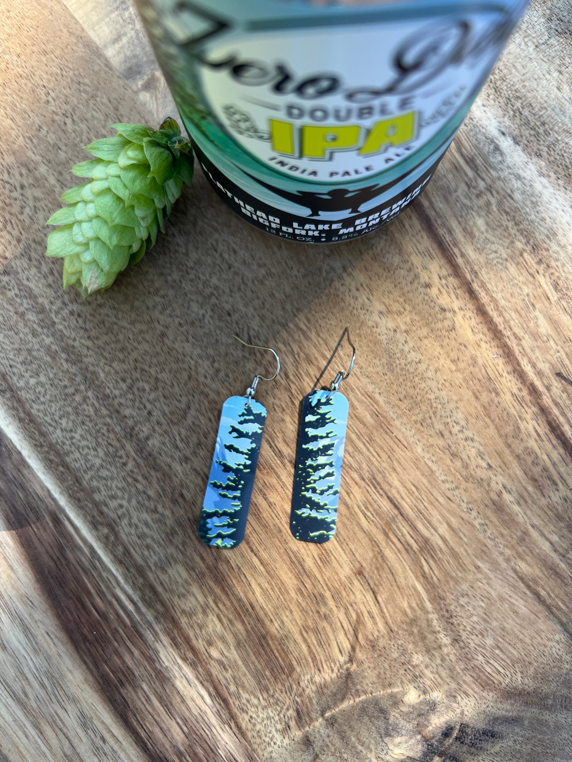 1.5" tall earrings handmade from beer cans with stainless steel hooks. From Flathead Lake Brewing Company's Zero Day Double IPA!