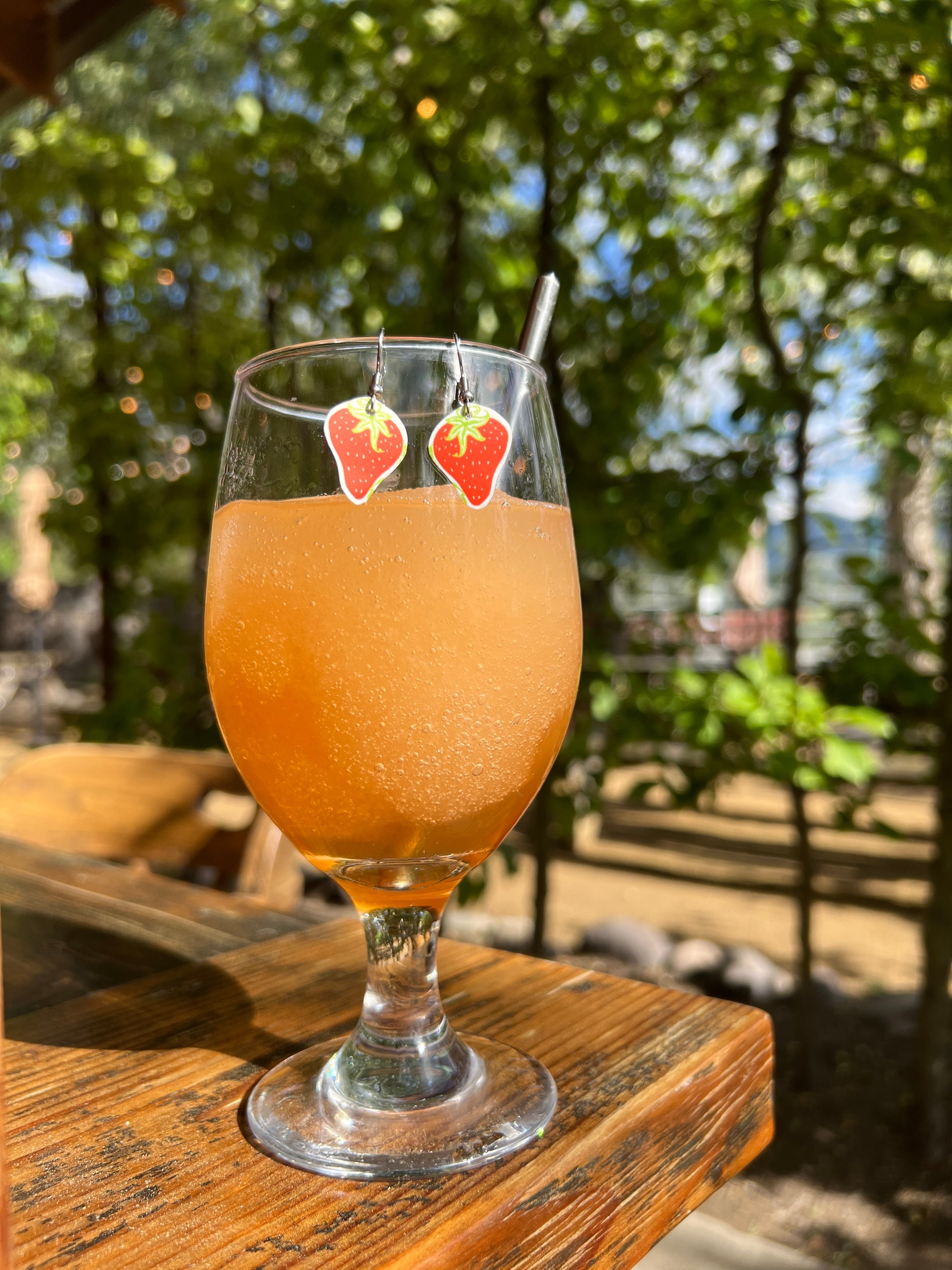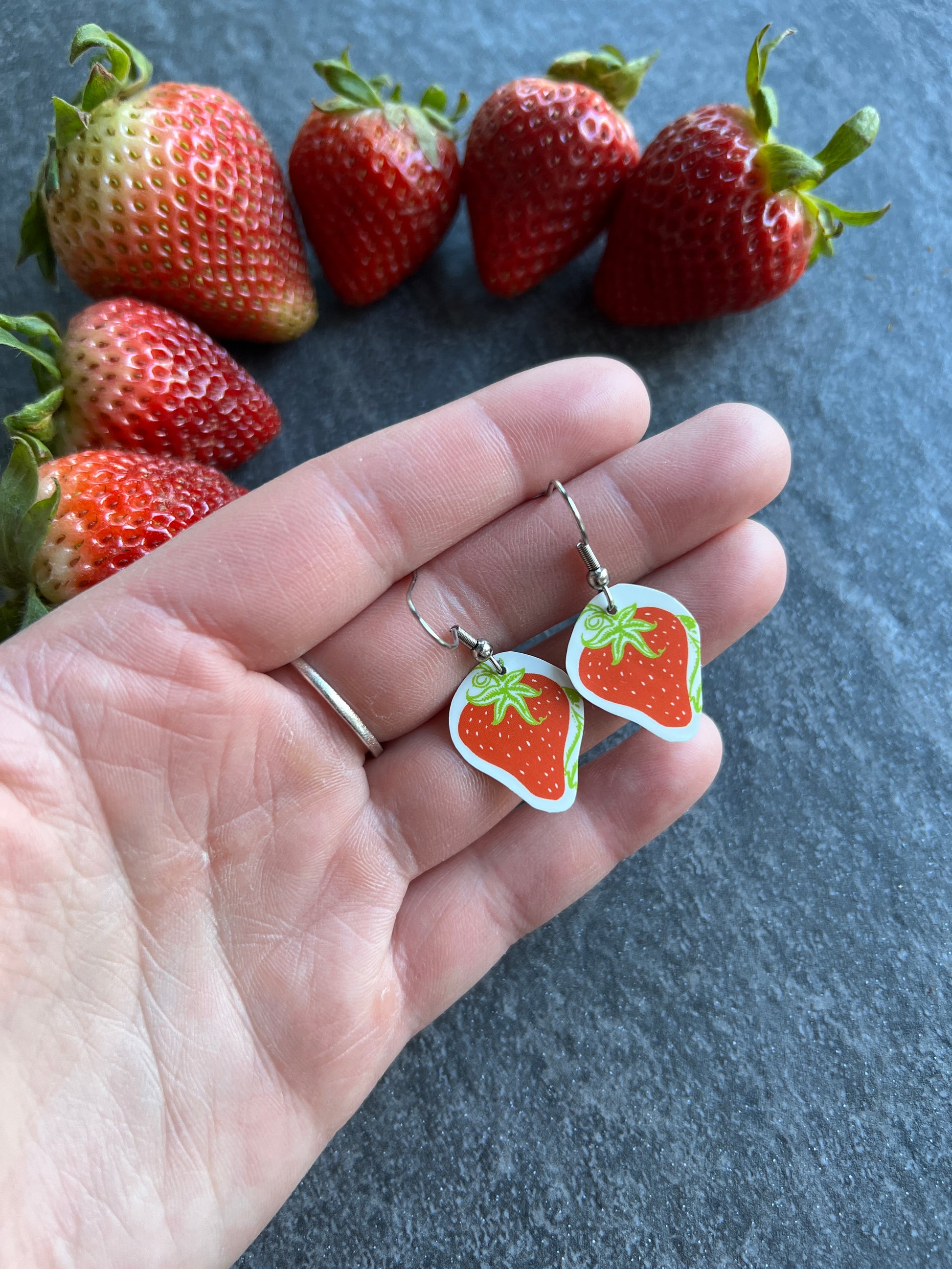 1/2" tall earrings handmade from beer cans with stainless steel hooks. From Western Cider's Strawberry Dolgo! Each pair is cut by hand, so small variance in shape is expected.