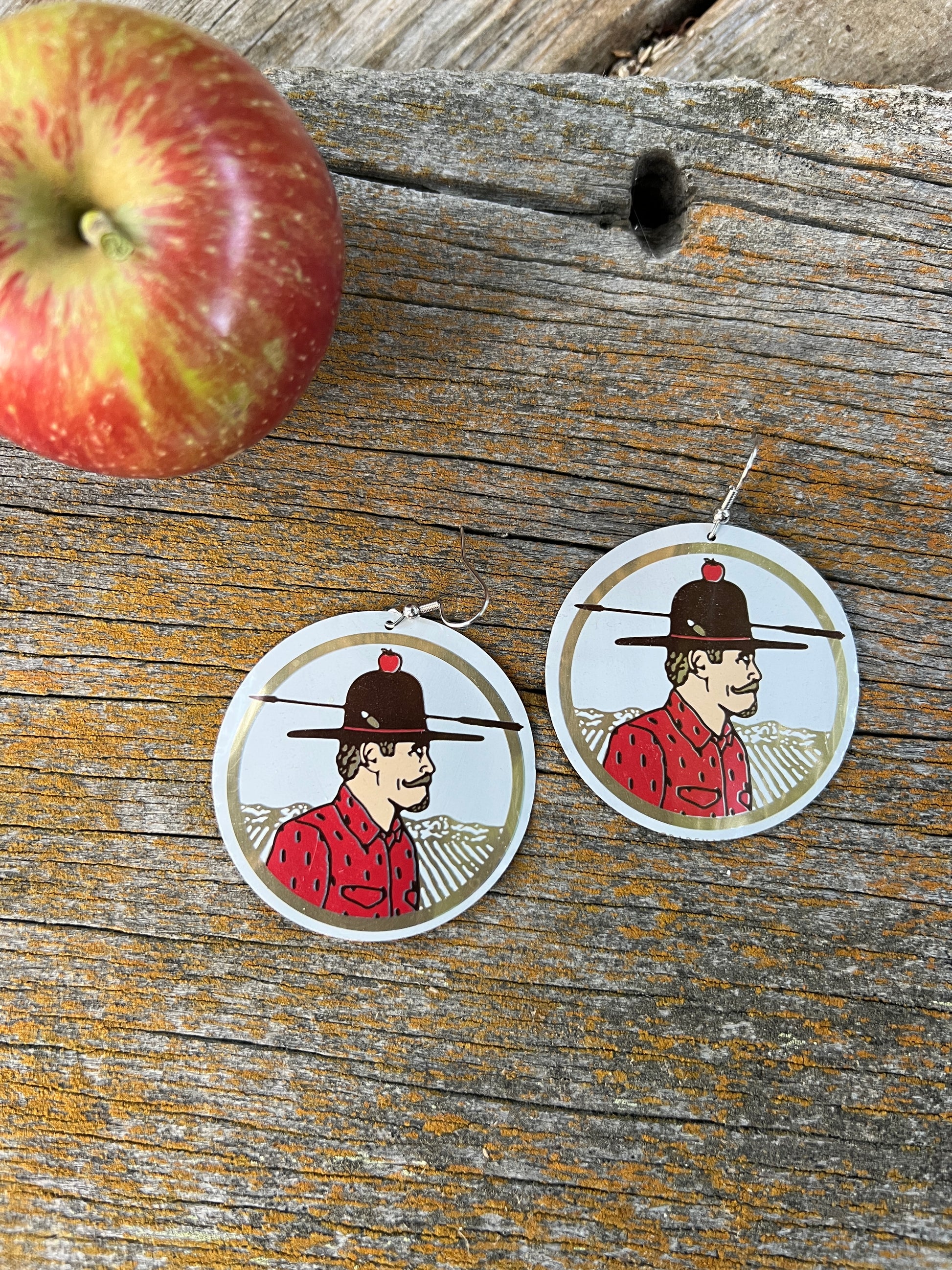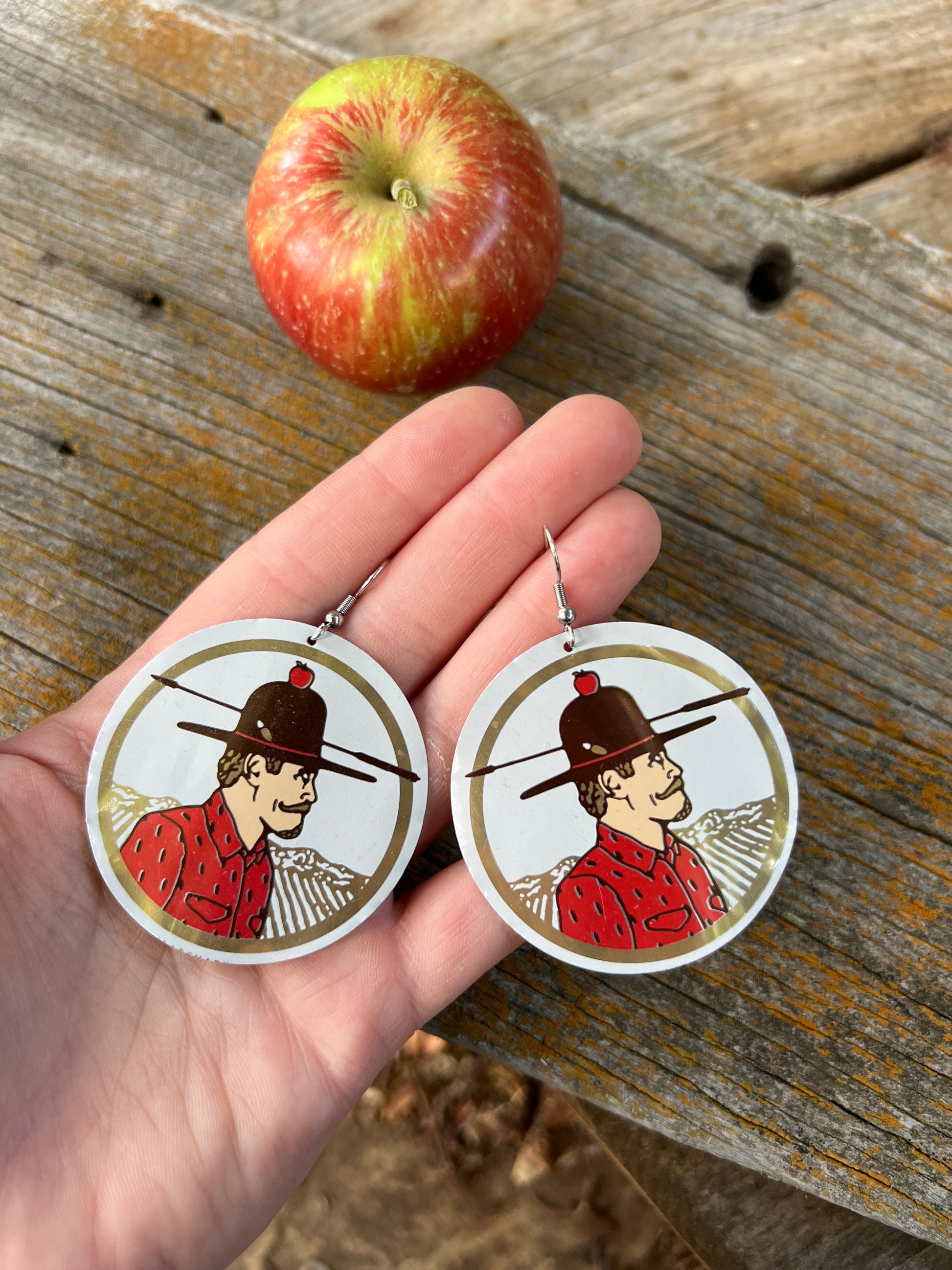 2" tall earrings handmade from beer cans with stainless steel hooks. From Western Cider's Poor Farmer!