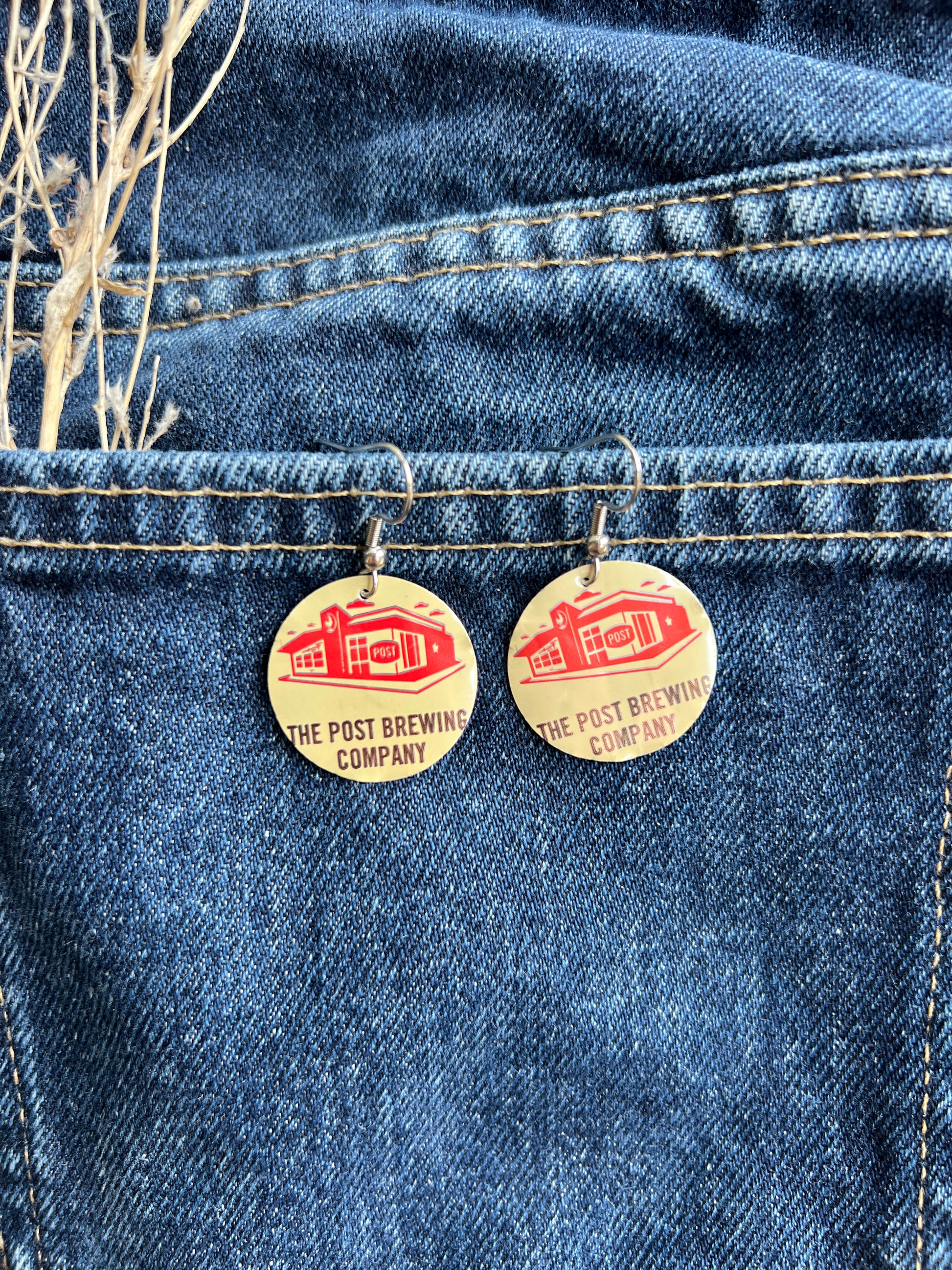 1" tall earrings handmade from beer cans with stainless steel hooks. From Howdy Beer!