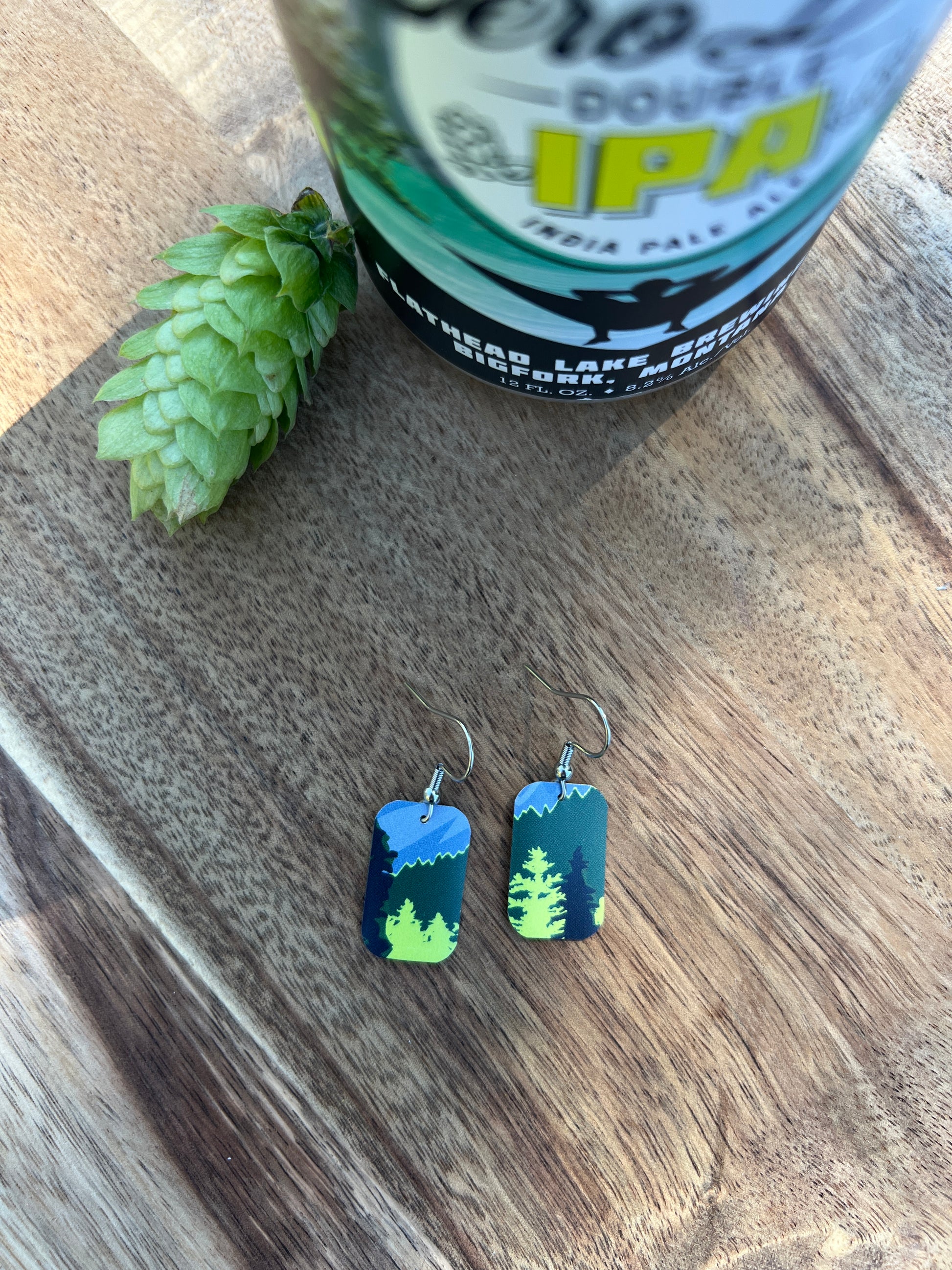3/4" tall earrings handmade from beer cans with stainless steel hooks. From Flathead Lake Brewing Company's Zero Day Double IPA!
