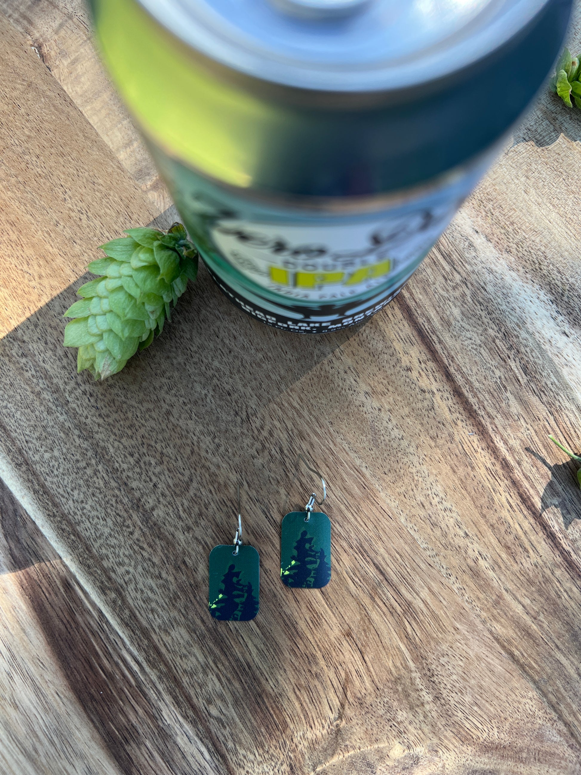 3/4" tall earrings handmade from beer cans with stainless steel hooks. From Flathead Lake Brewing Company's Zero Day Double IPA!