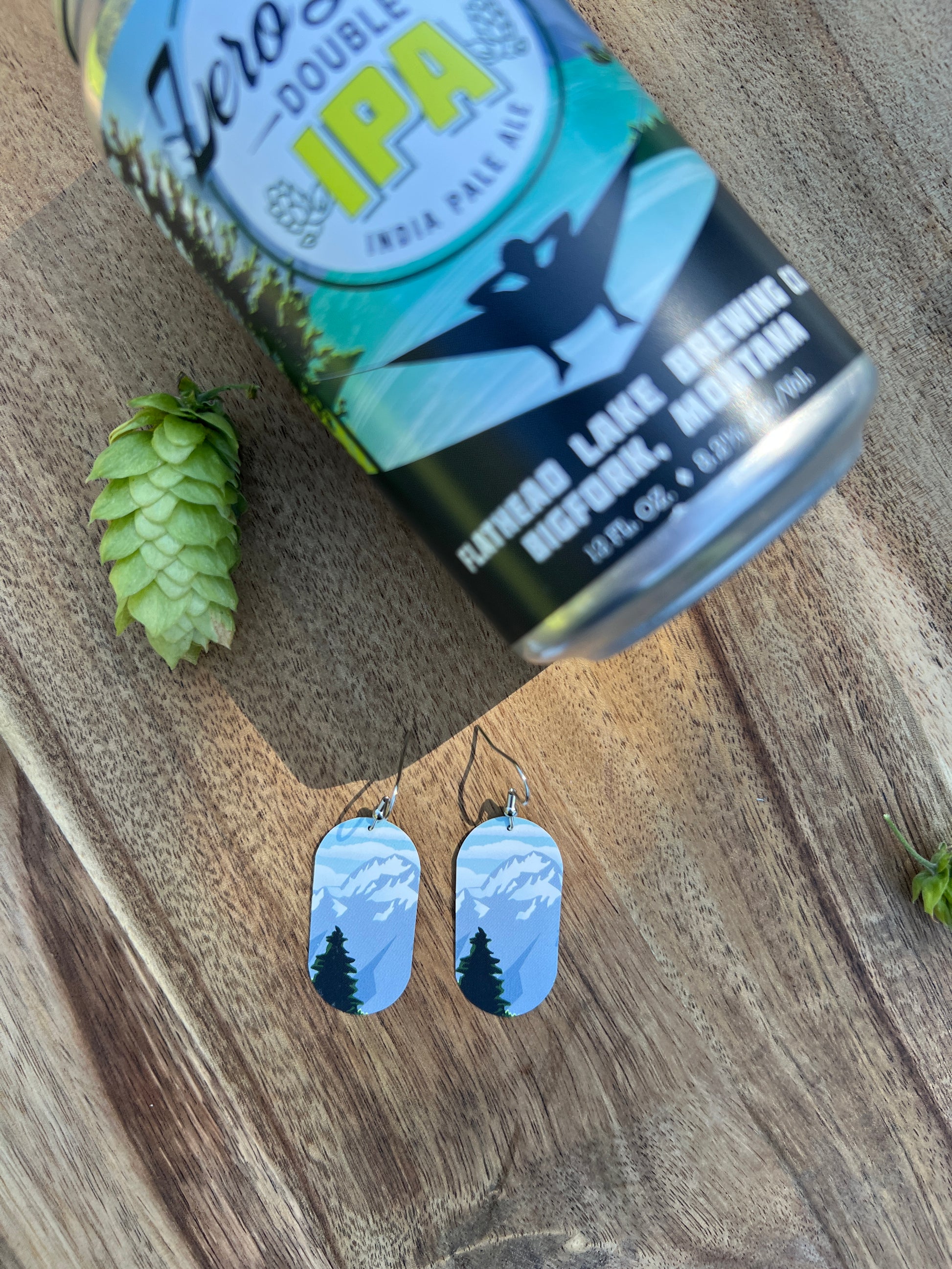 1.5" tall earrings handmade from beer cans with stainless steel hooks. From Flathead Lake Brewing Company's Zero Day Double IPA!