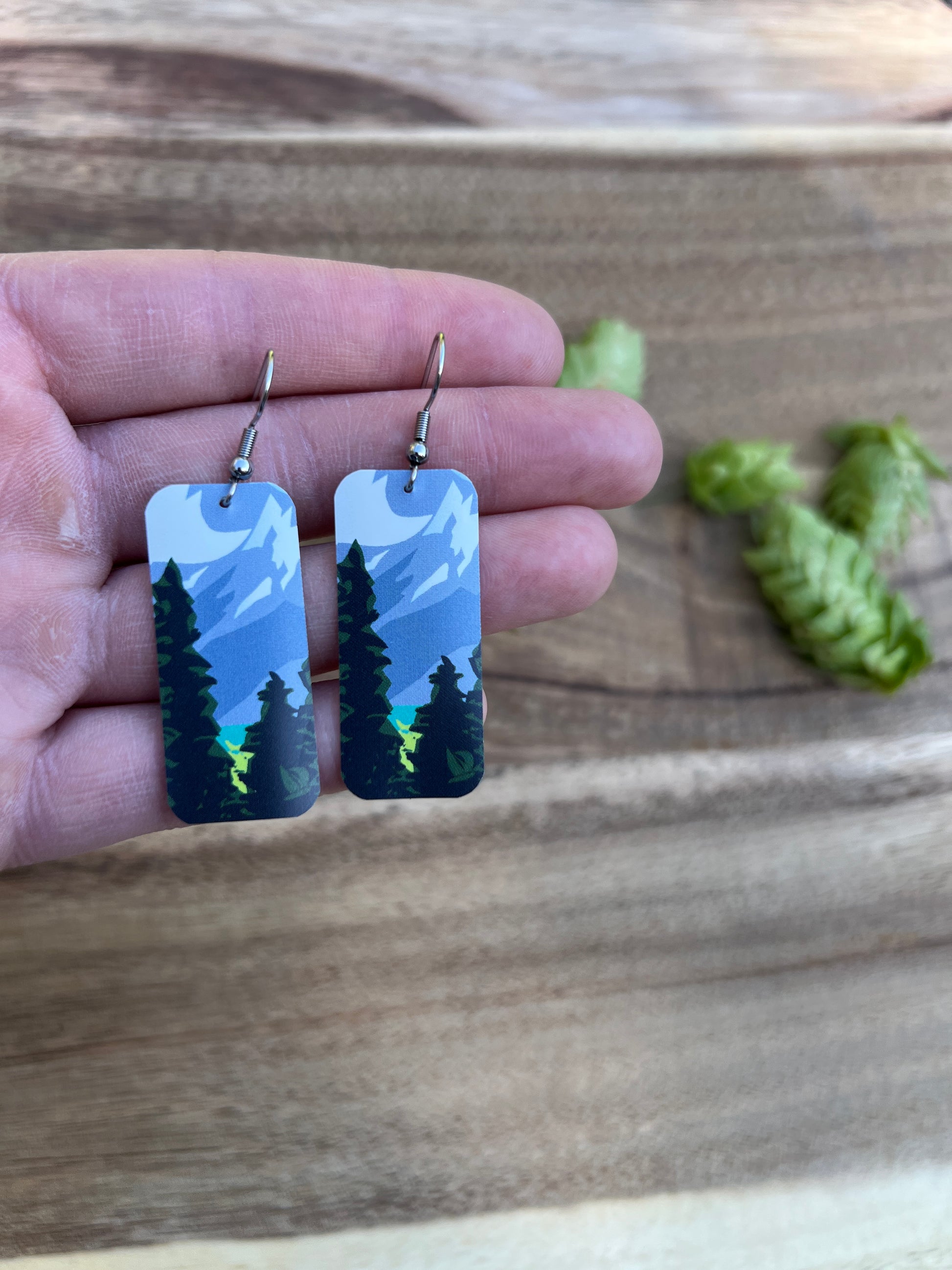 1.5" tall earrings handmade from beer cans with stainless steel hooks. From Flathead Lake Brewing Company's Zero Day Double IPA!