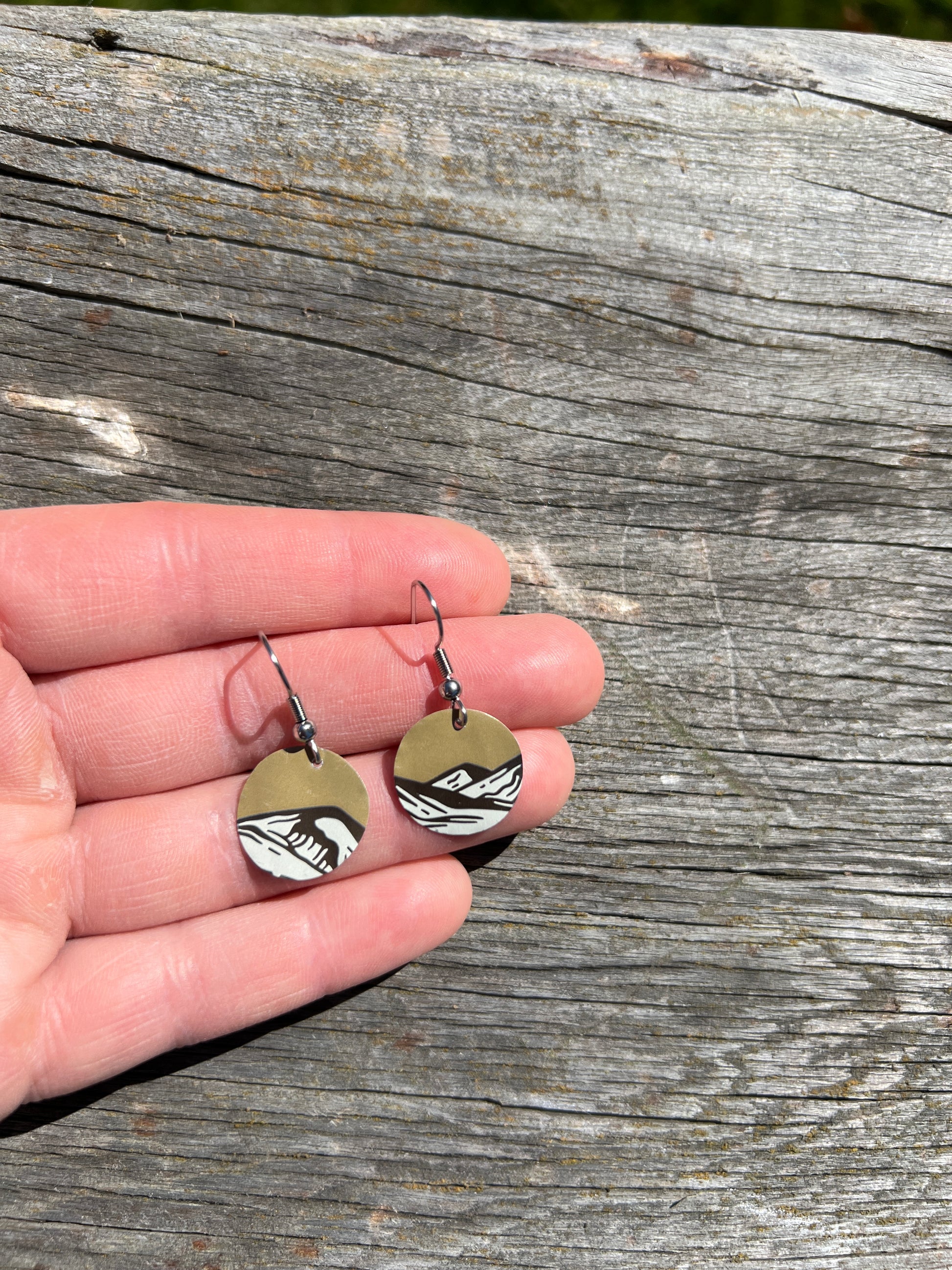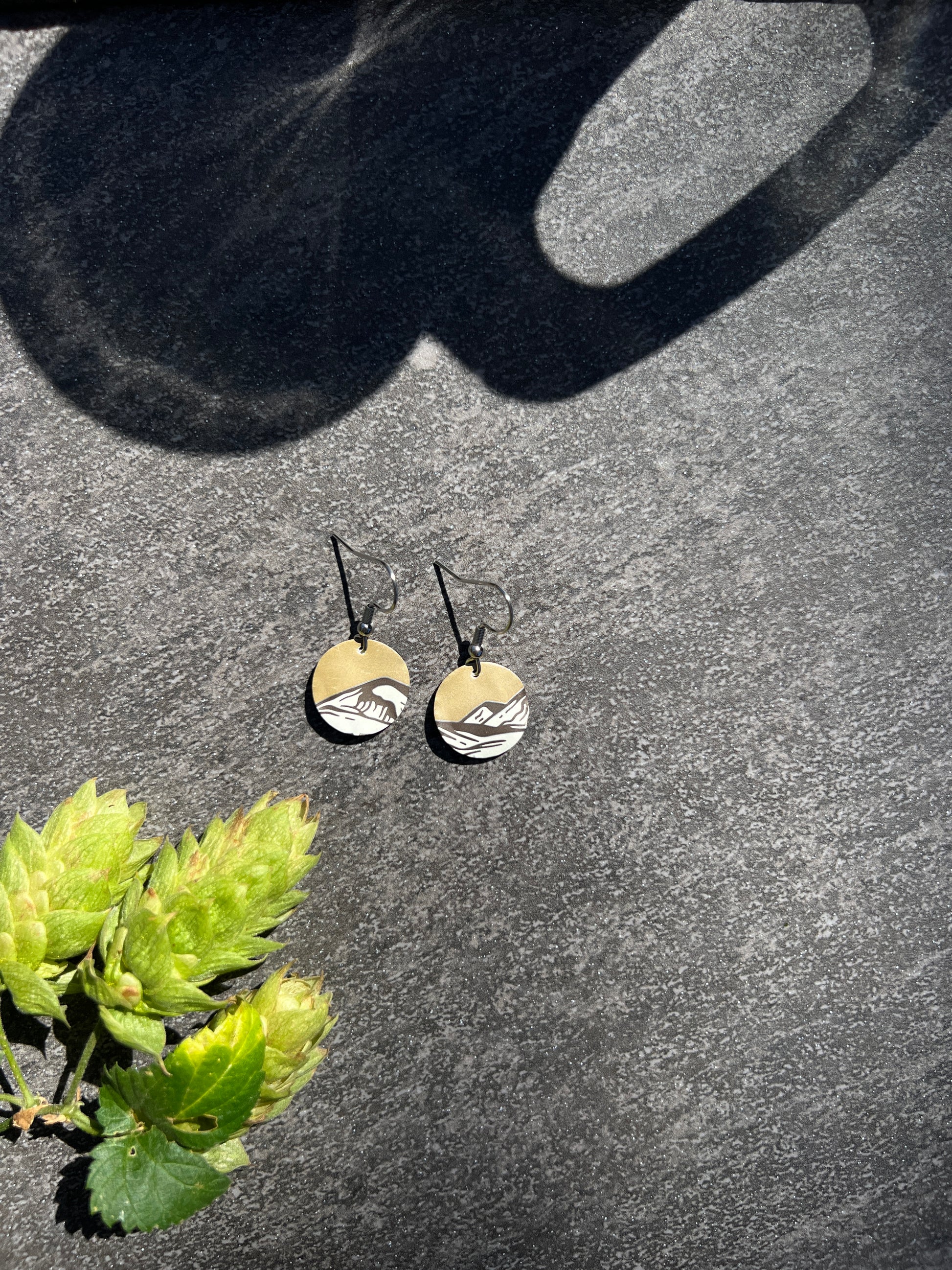 1/2" tall earrings handmade from beer cans with stainless steel hooks. From Bitter Root Brewing's Dirt Church!
