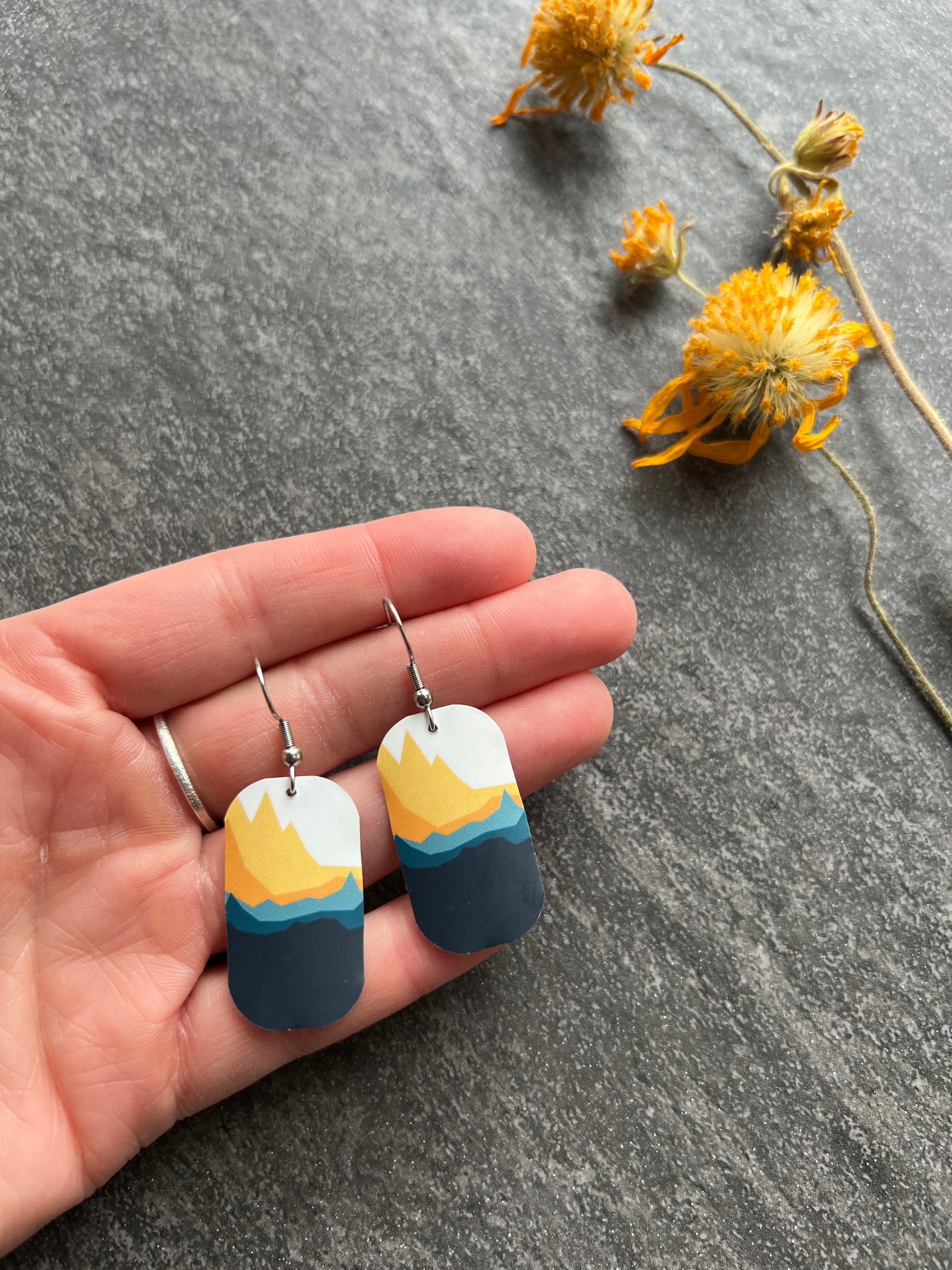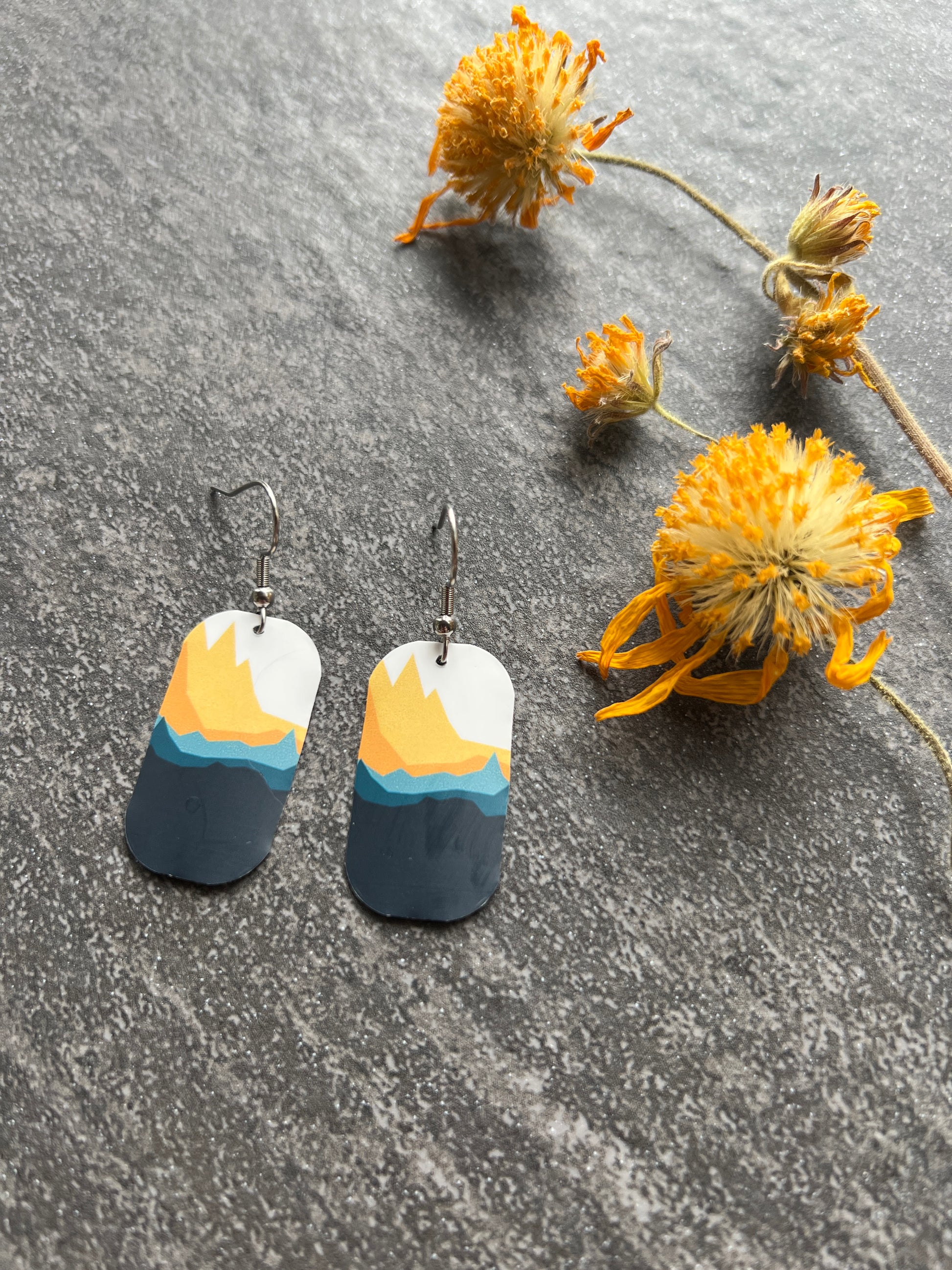 1.75" tall earrings handmade from beer cans with stainless steel hooks. From High Point Cider's Transplant Cider.
